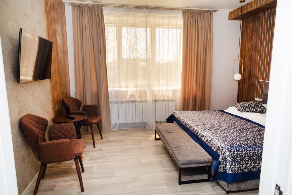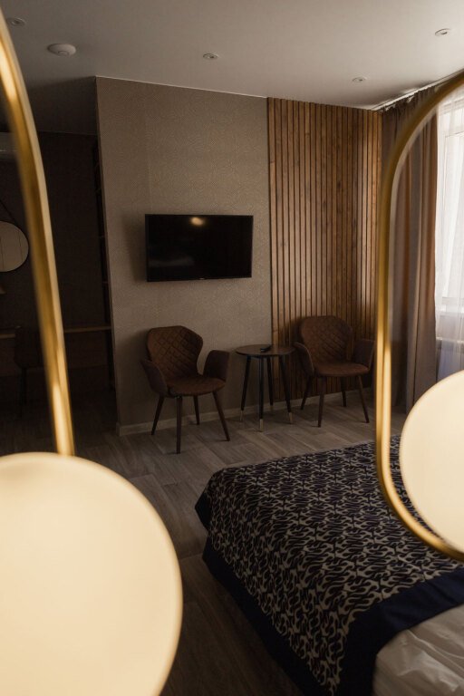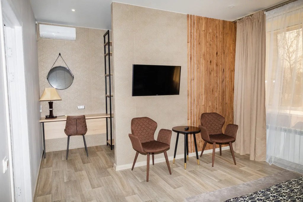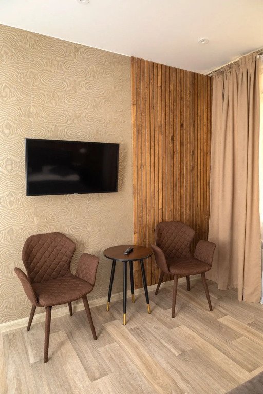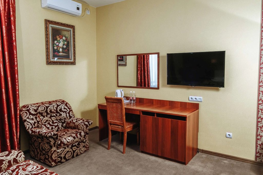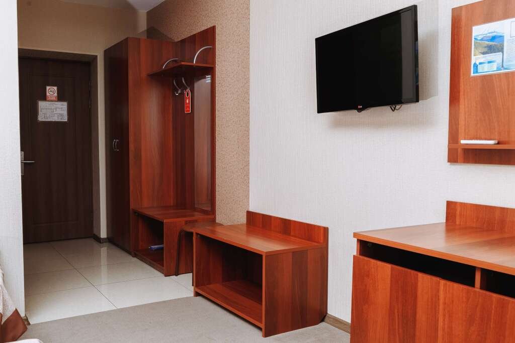 В номере вы найдёте телевизор и халат. Оснащение зависит от выбранной категории номера.
