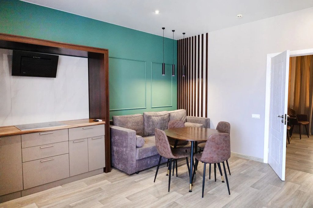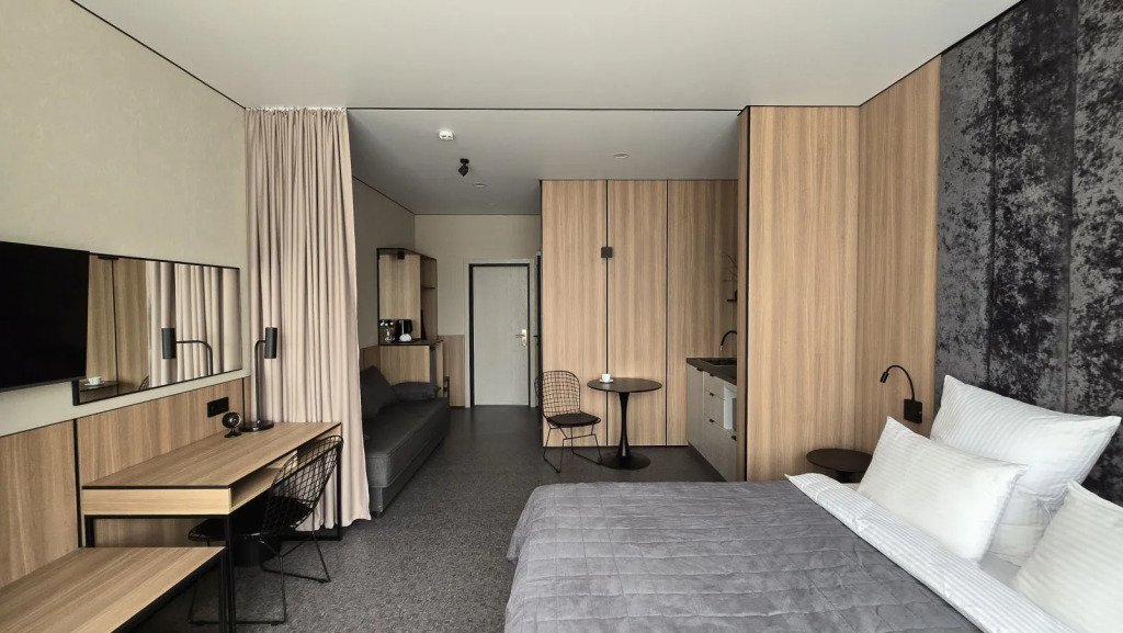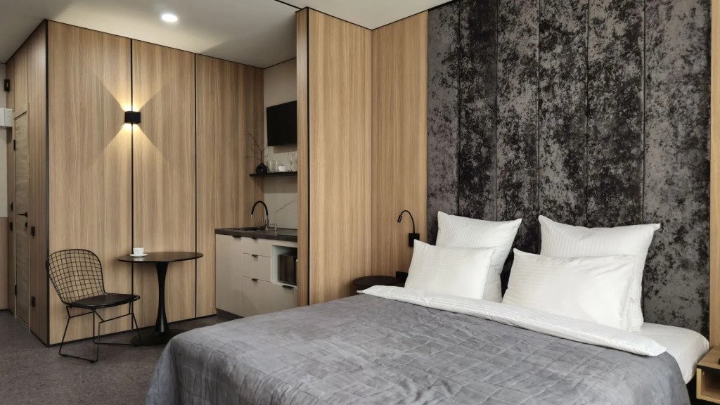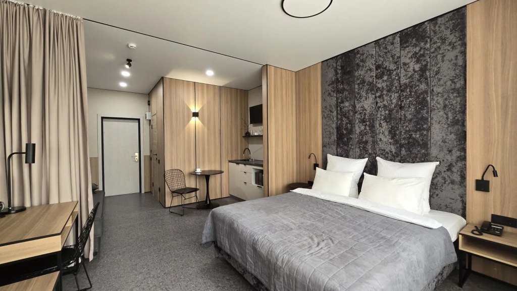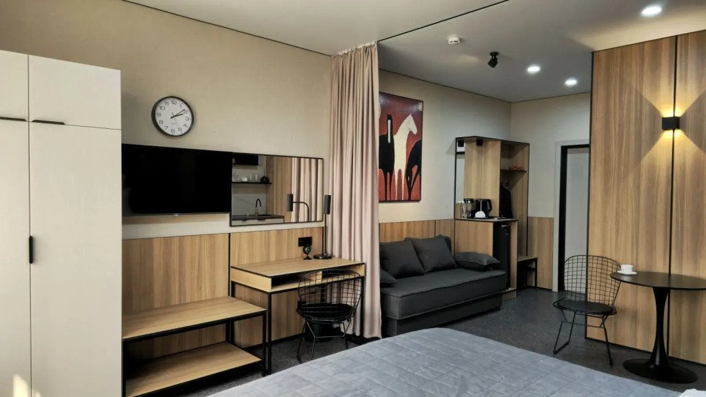 В номере вы найдёте телевизор и халат. Оснащение зависит от выбранной категории номера.