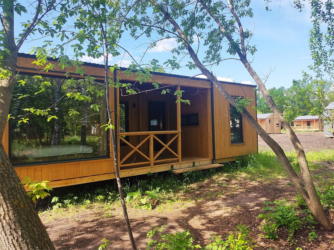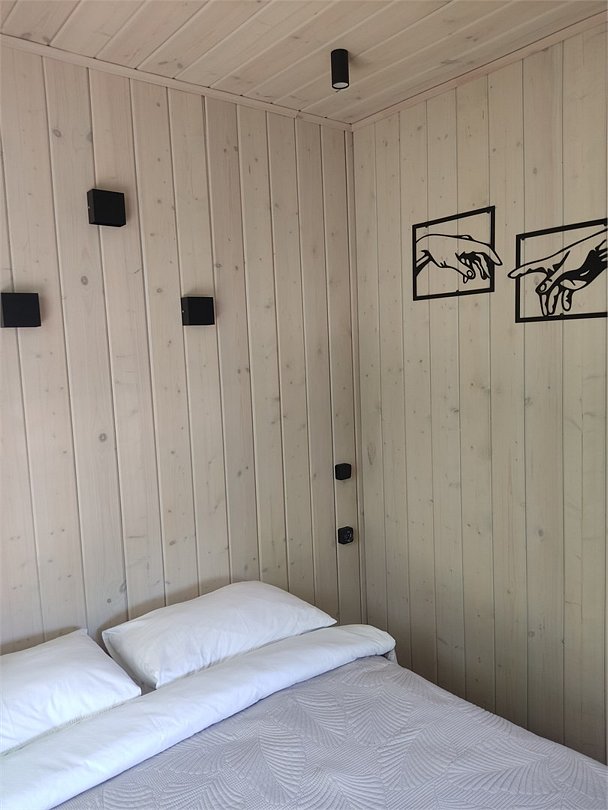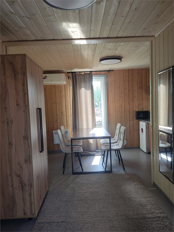 Отдельно стоящий дом, состоящий из 3х комнат. Две изолированные спальни с размещением от 2х до 4х человек и общая кухня-гостиная.Тихая роща 6+2