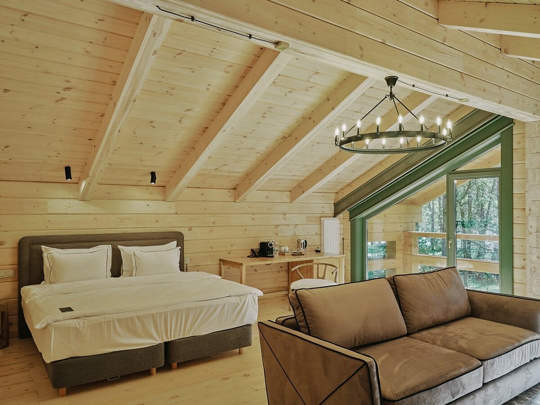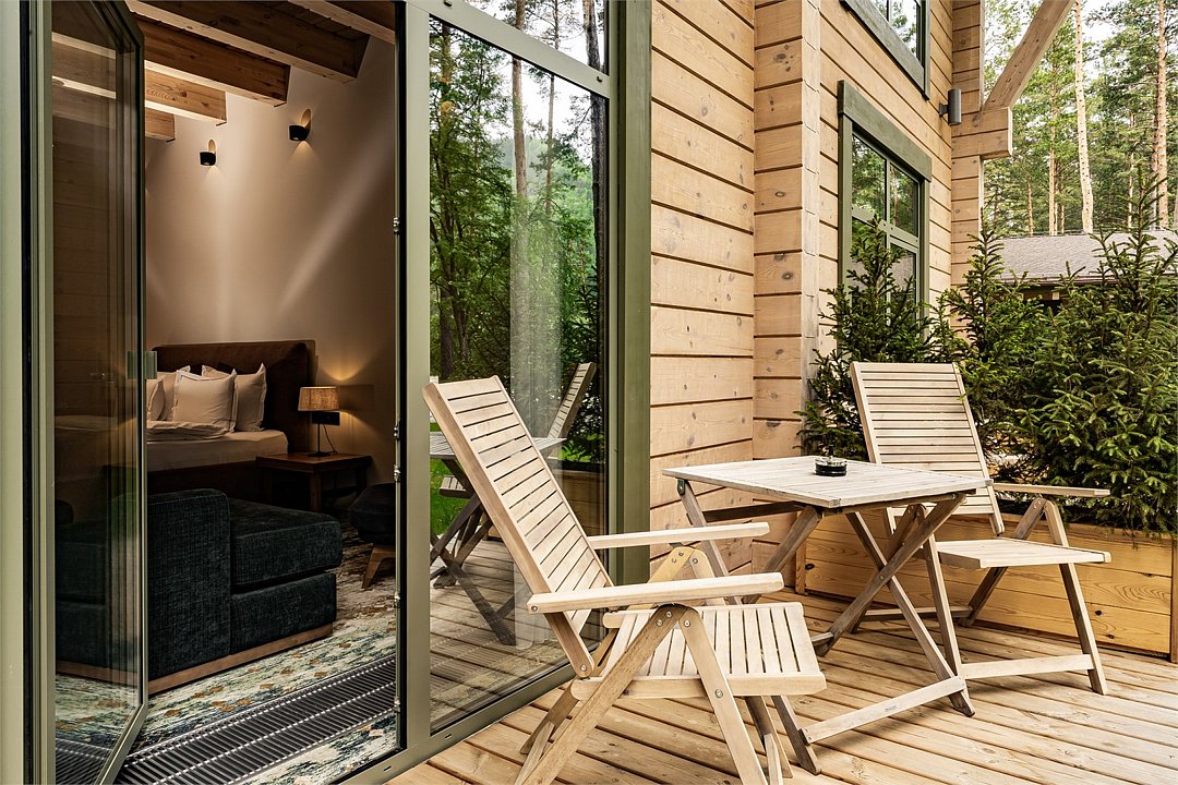 Wi-Fi, кондиционер, система климат-контроля, светильник, настольные лампы, фен, душевая кабина, санузел, теплый пол, халаты, банные полотенца, тапочки, косметические средства, терраса, кровать «King size», гладильная доска, шкаф для одежды, вешалки, зеркало, обслуживание номеров, информационная карта, меню, сейф, чайник, раковина, ковровое покрытие, отопление, душ, вид на реку, меню подушек, стаканы, стул, тумба, туалетные средства, туалет, внутренний телефон, телевизор с плоским экраном, номер для некурящих, рабочий стол, чайная станция, набор для приготовления чая и кофе, вешалки-плечики, бутилированная вода, мини-бар (платно), мыло, затемняющая штора, дождевой и ручной душВ гостиничном номере