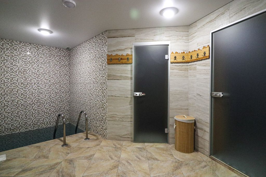 При посещении банного комплекса гости получают: большие махровые полотенца, халаты, простыни, тапочки. Имеются войлочные шапки и подстилки. В душевых установлены диспенсеры с косметикой для душа.