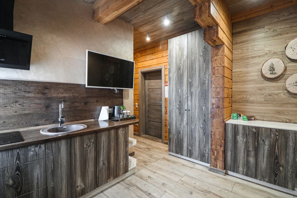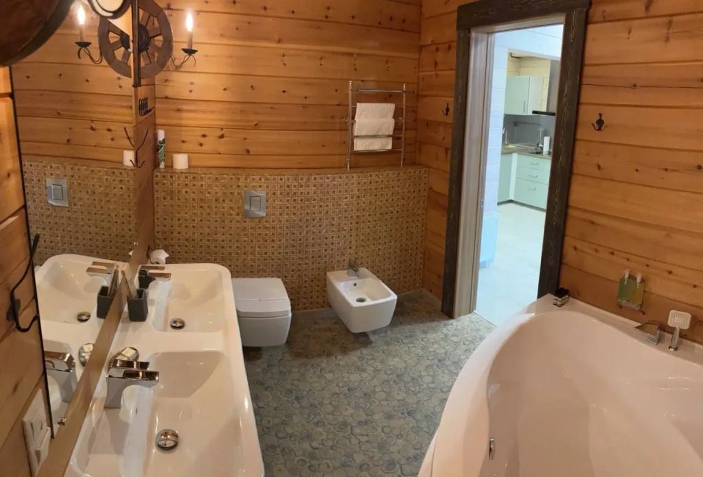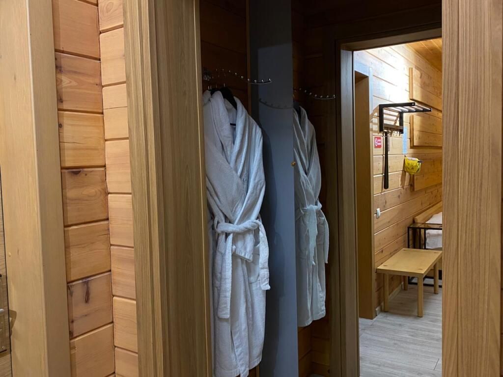 Инфраструктура: тапочки, бассейн, зона отдыха, полотенца, обливное ведро, душ, халатыРусская баня на дровах. Закрытая каменка прогревает камни открытым огнем на протяжении 6-8 часов. Это позволяет получить мягкий и долгий пар, который идеально подходит для парения.