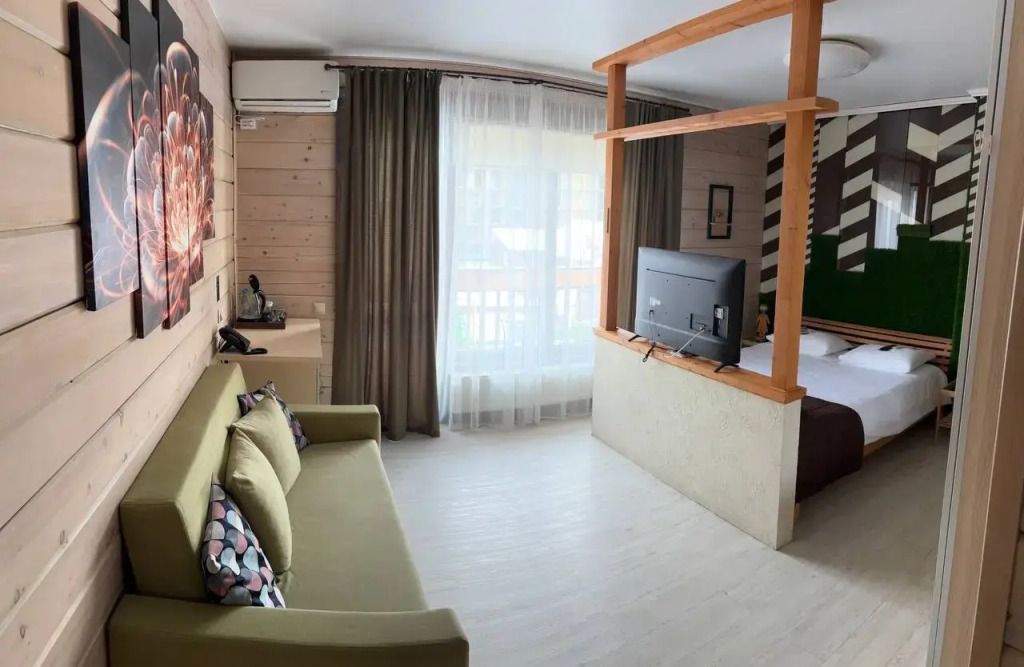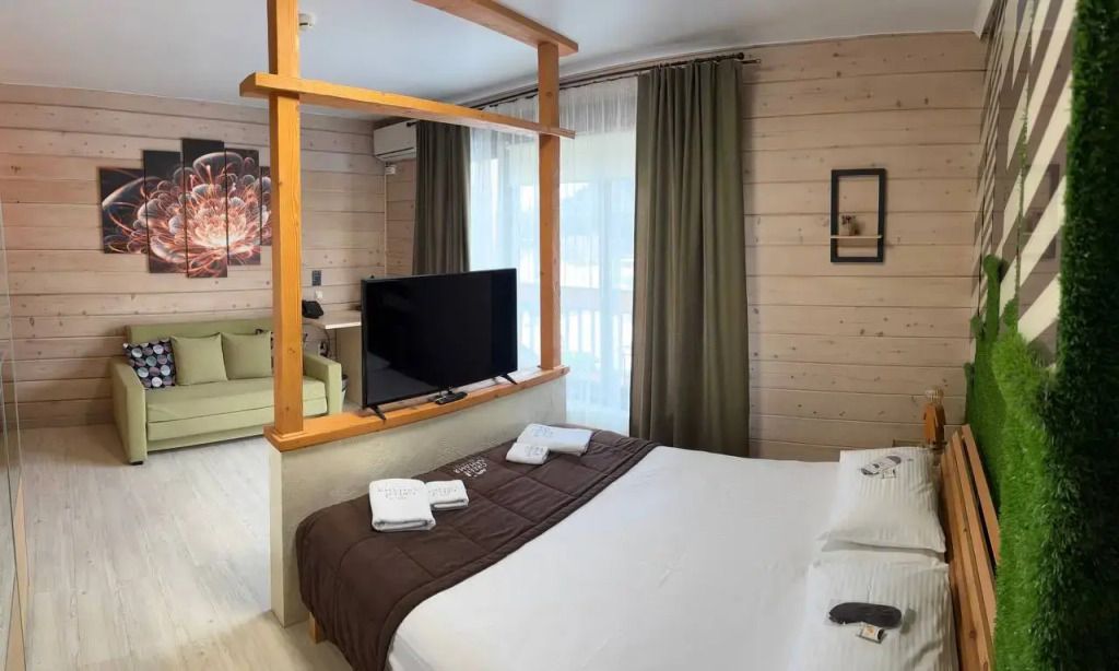 Двухместная студия с балконом и с красивым видом из окна двуспальная кровать