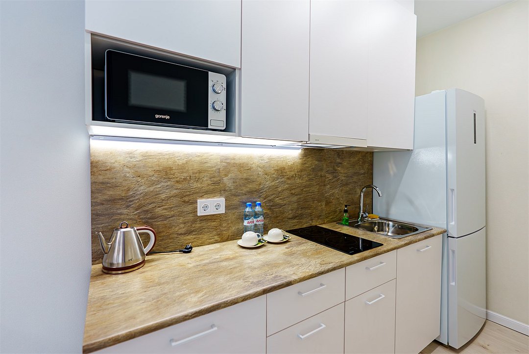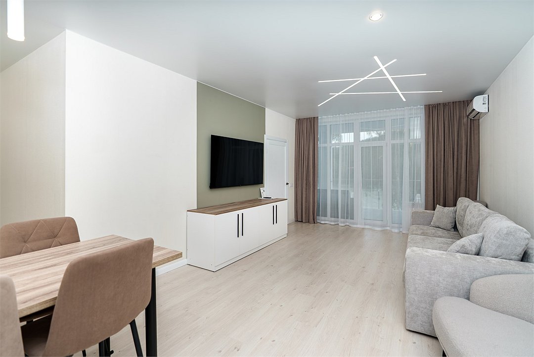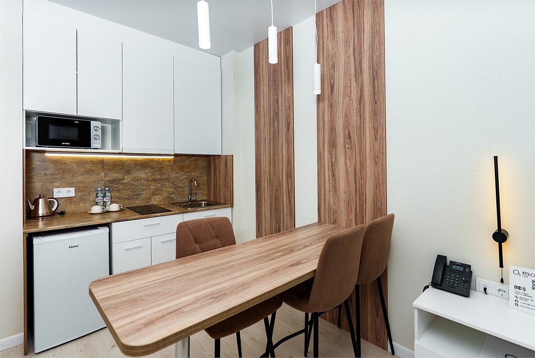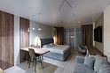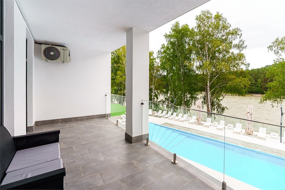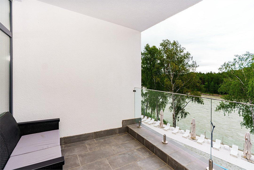 Просторный номер, площадью 60м², с балконом. Балкон с видом на реку, оборудованный мебелью придаст вашему отпуску невероятный комфорт и наслаждение каждой минутой. В номере 2 комнаты: спальня и гостиная. В вашем распоряжении ванная комната с душевой кабиной, феном и косметическим принадлежностями. Прочувствовать особую атмосферу дома позволяет оборудованная кухня с обеденной зоной. Номер подойдет для проживания семьей. На территории отеля ведутся строительные работы по благоустройству.Услуги и удобства
