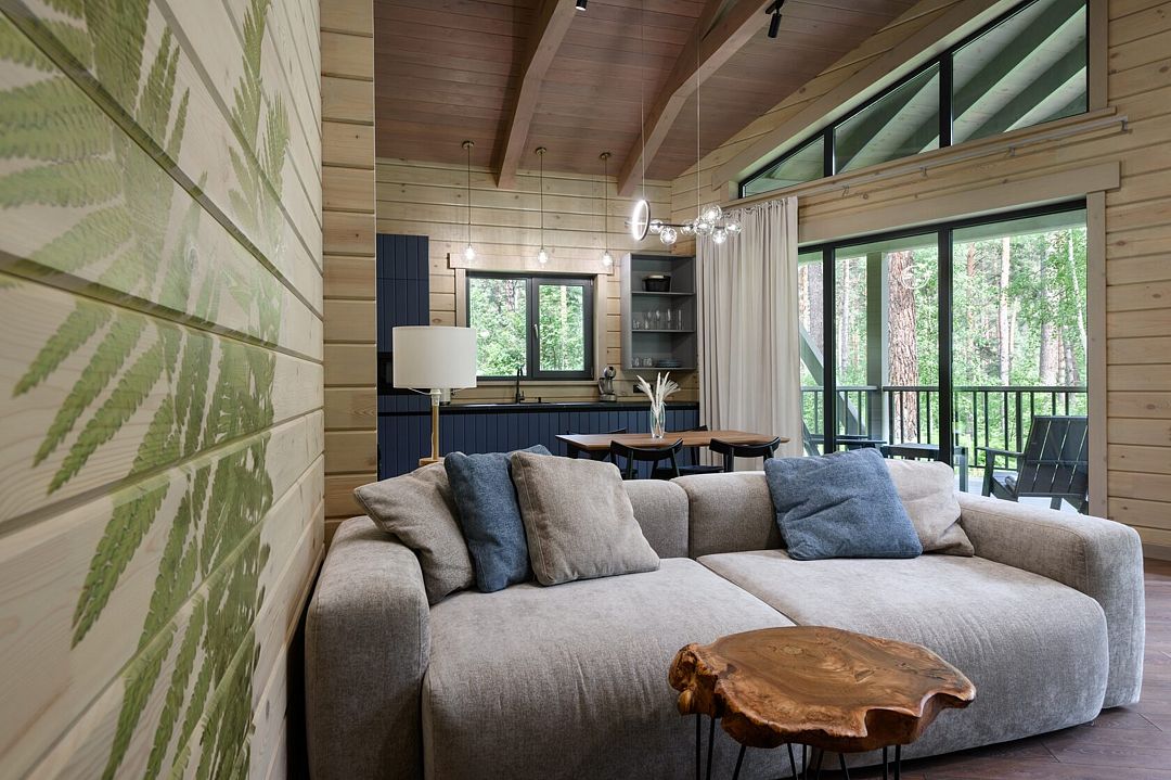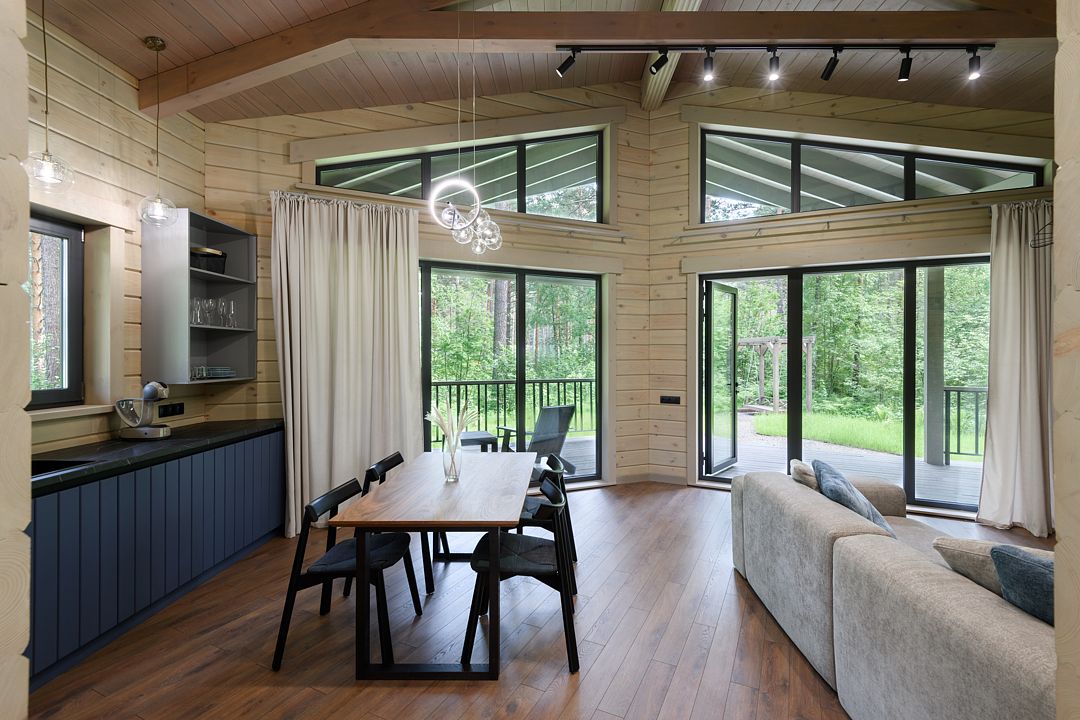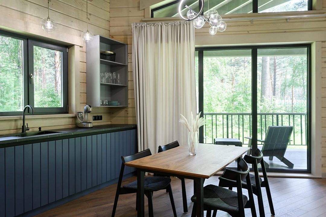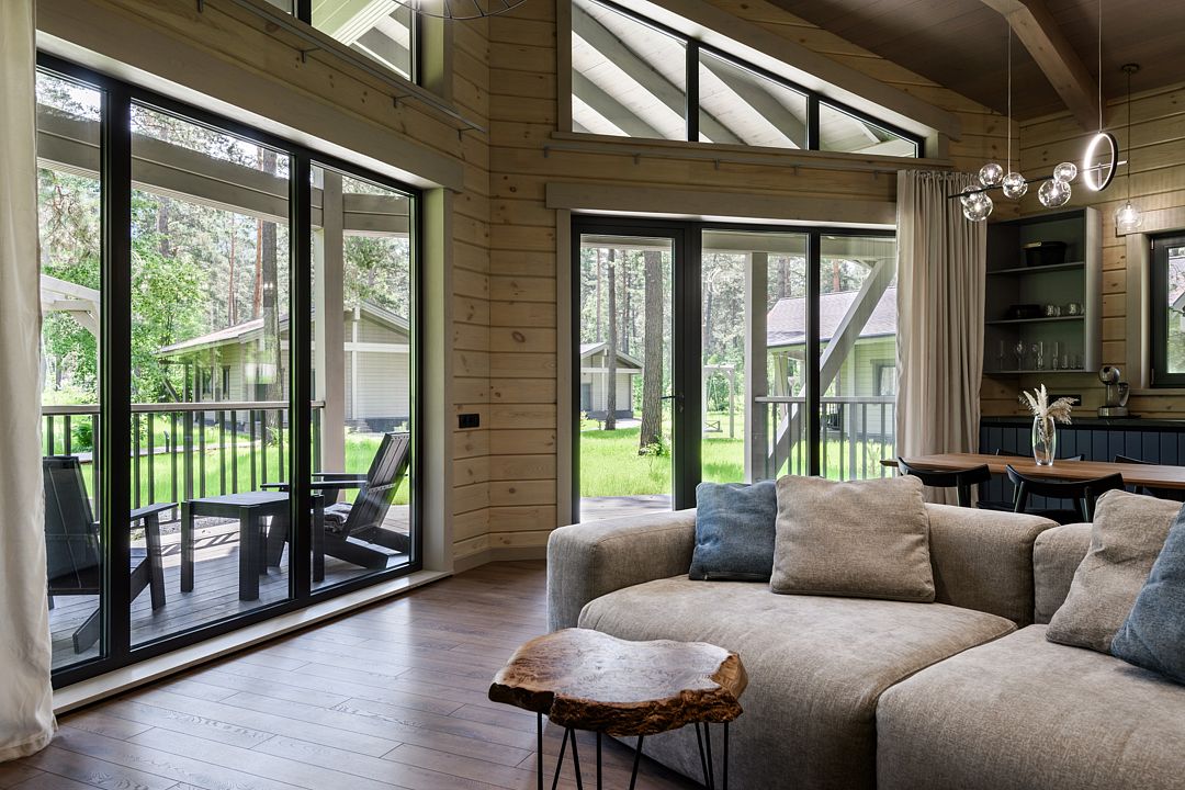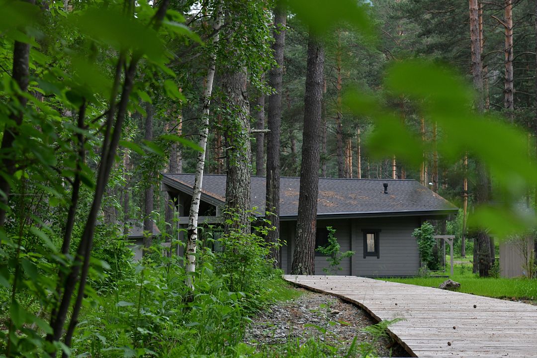 Каждое шале располагается на приватной территории и оборудовано индивидуальными зонами для гриля, окруженными сосновым лесом. Шале построены из алтайского кедра и могут комфортно разместить до четырех человек. Внутри вас ждут все необходимые удобства для самостоятельного проживания: встроенный холодильник, СВЧ-печь, капсульная кофемашина, чайник и полный комплект посуды. Это место идеально подходит тем, кто хочет сбежать от городской суеты и насладиться красотой природы вдали от шумных трасс.