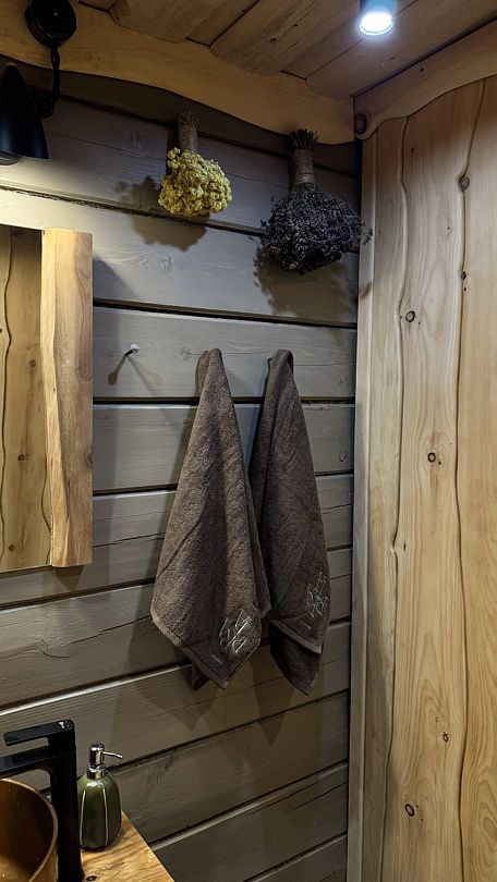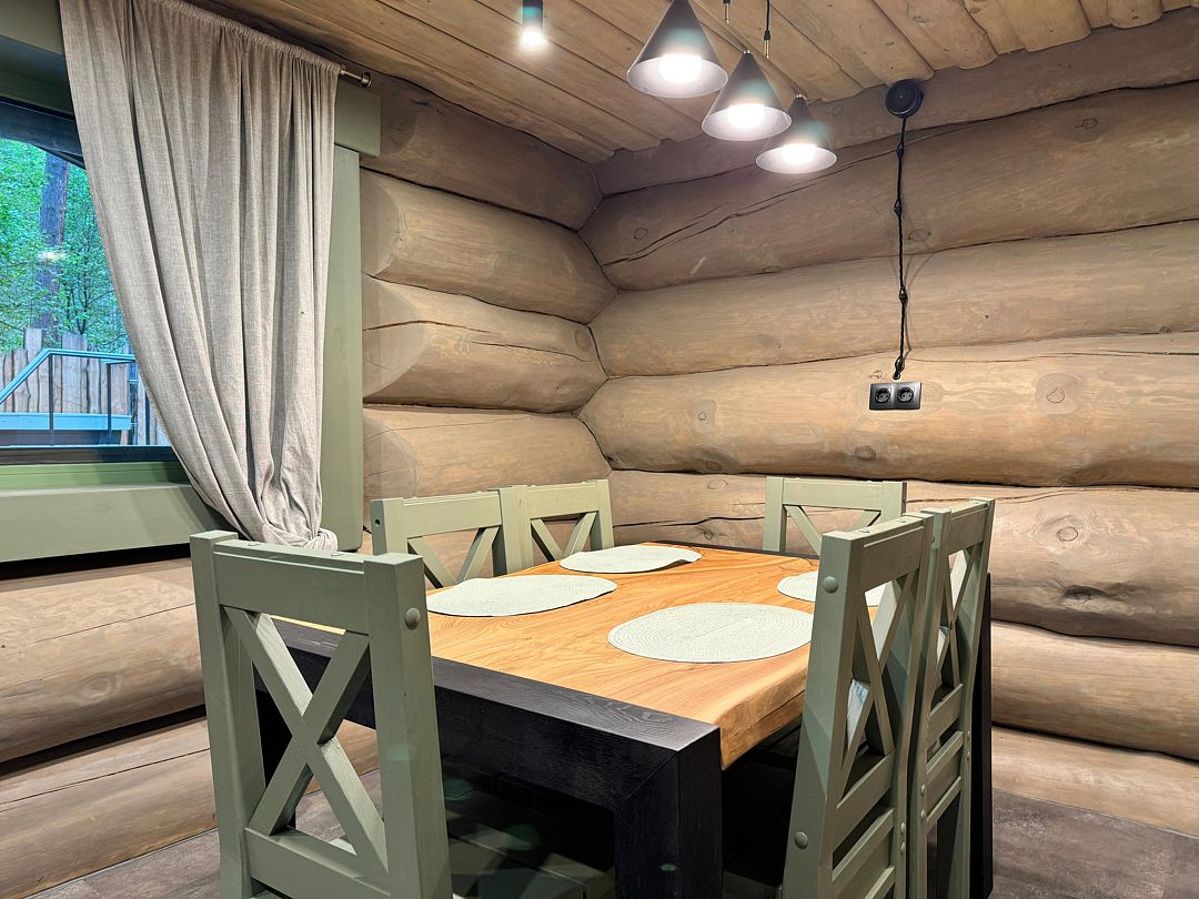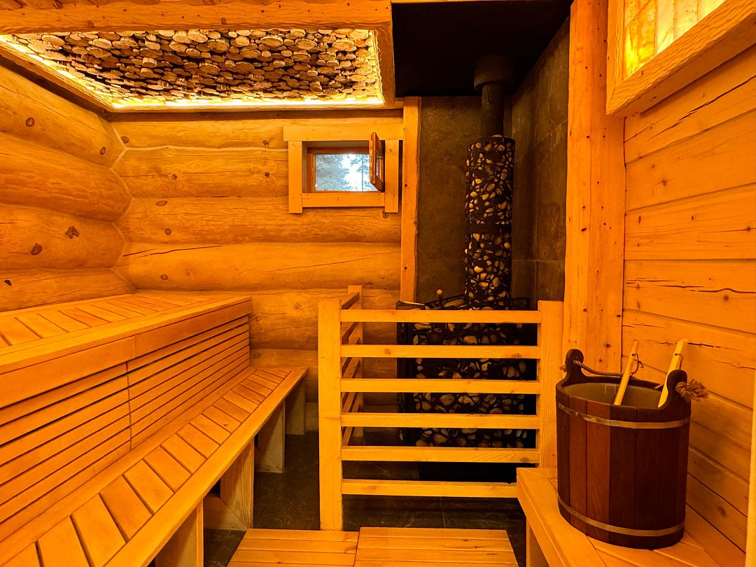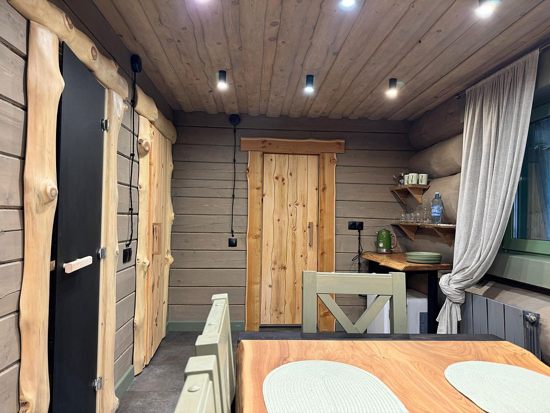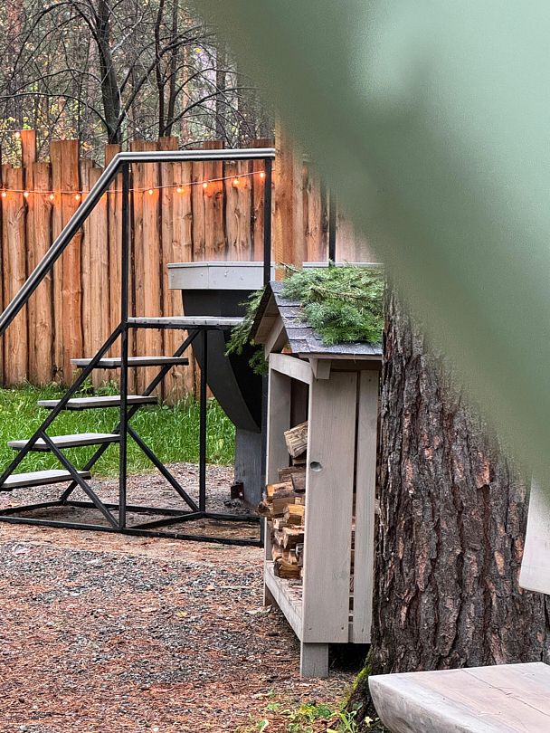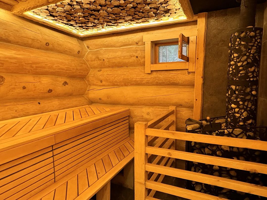 К вашим услугам: вместительная парная, комната отдыха, душ, обливное ведро с ледяной водой, комната для переодевания. На улице: горячий чан на огне с еловыми ветками, банная качель, зона отдыха на вместительной террасе.
