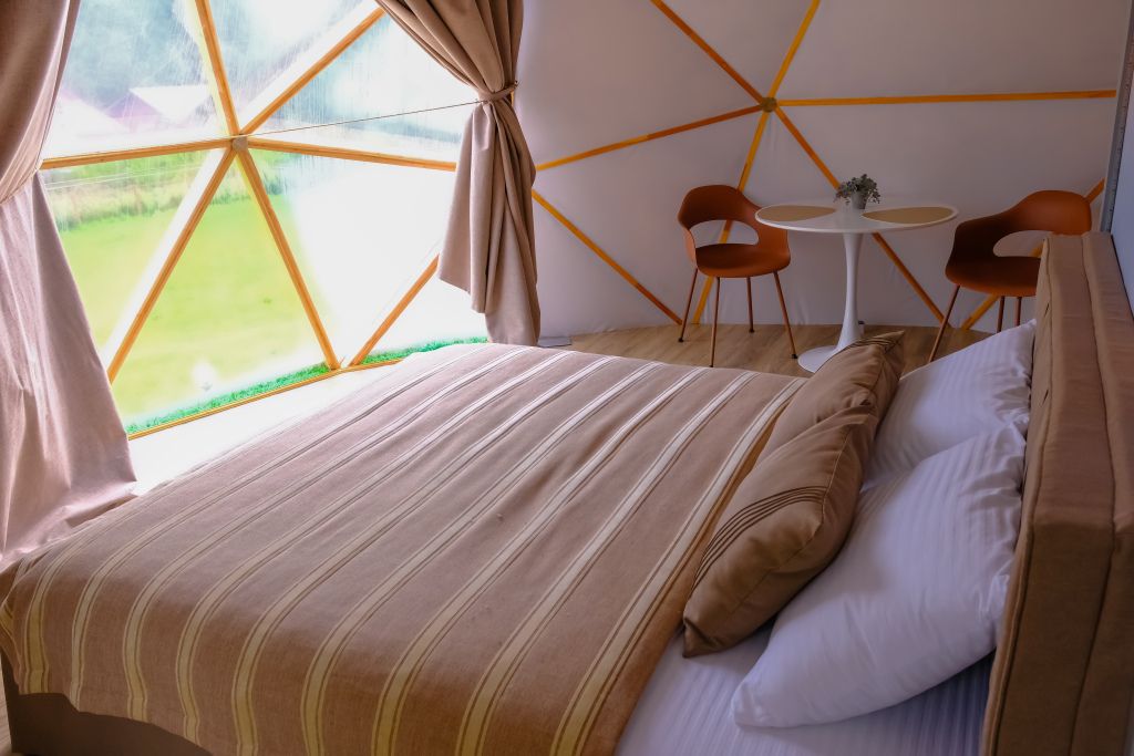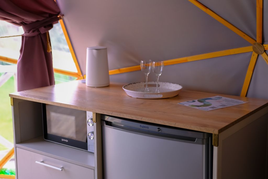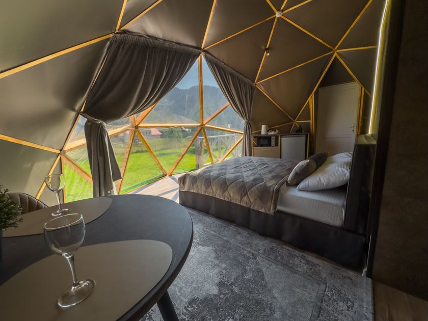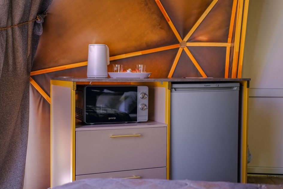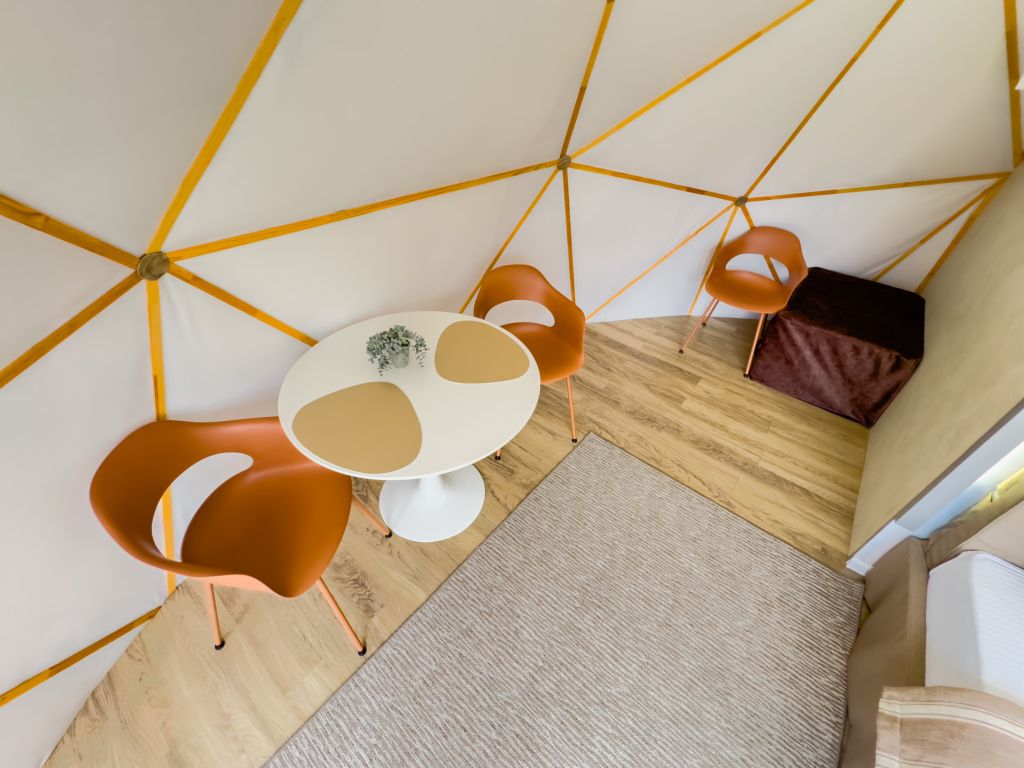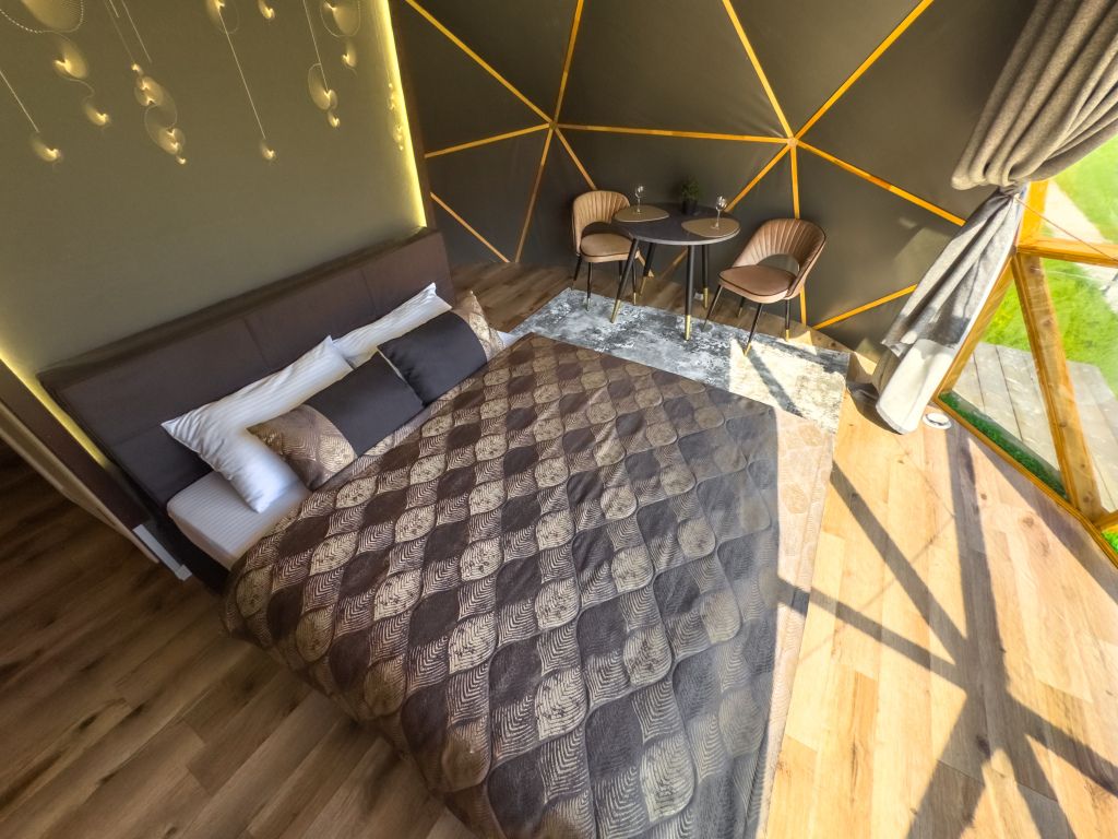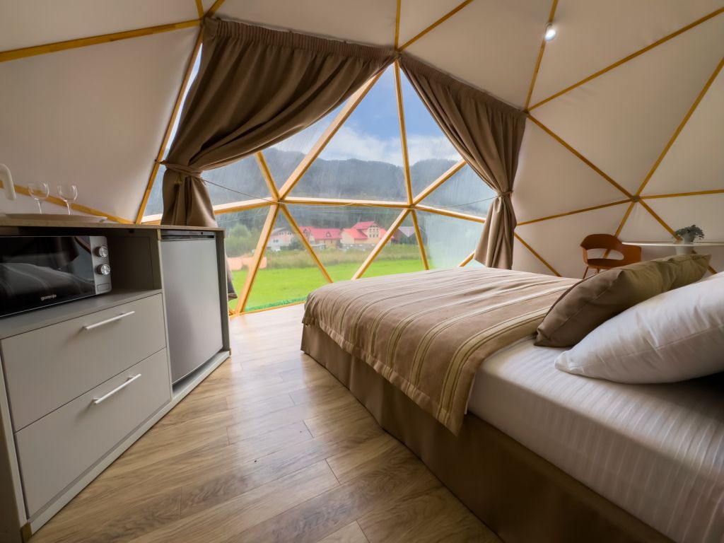 Одна из 4-х уникальных сфер глэмпинга Sfera — Сфера Глэм. Она создаст атмосферу уюта и романтики, с палитрой розовых и лазурных оттенков, мягкими бархатистыми шторами и белоснежным постельным бельем. Насладитесь тишиной и уединением в этом идеальном месте для расслабления вдали от суеты. Специально подобранные элементы интерьера помогут создать незабываемое впечатление и подарят вам незабываемый отдых в окружении природы.