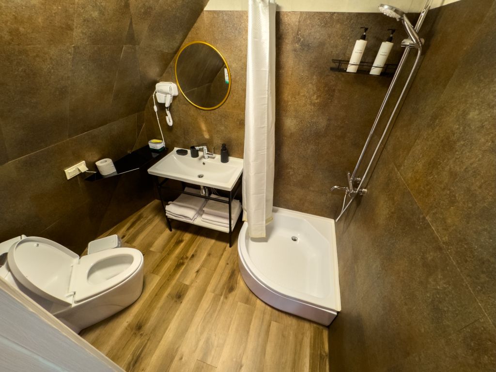 Сфера Релакс — это идеальный выбор для тех, кто ищет баланс между комфортом и эстетикой. Брутальность и шик интерьера, выполненного в темных тонах с золотыми акцентами, создают атмосферу уединения и отдыха. Почувствуйте расслабление и комфорт, окунувшись в эту уникальную атмосферу.