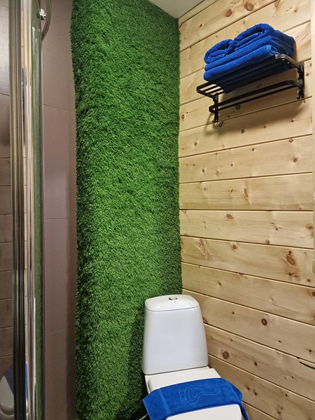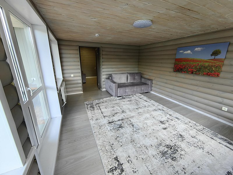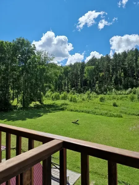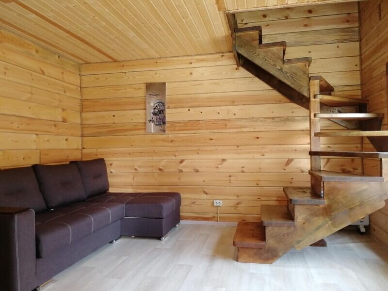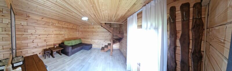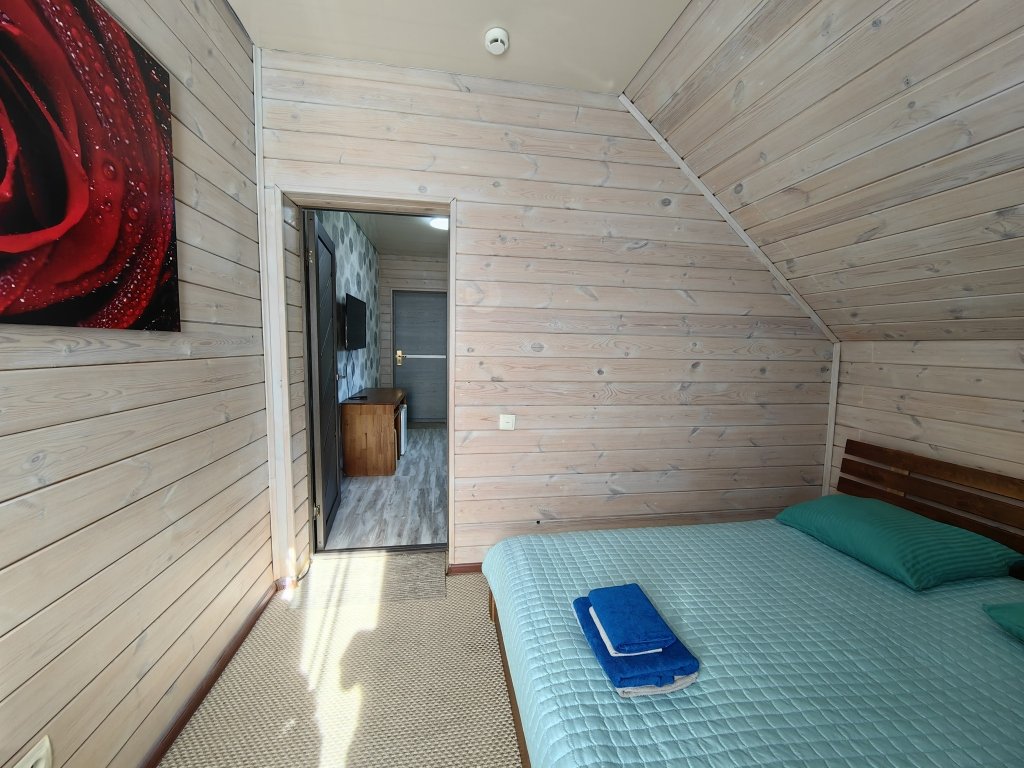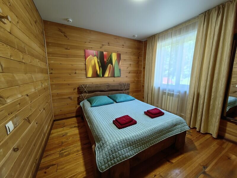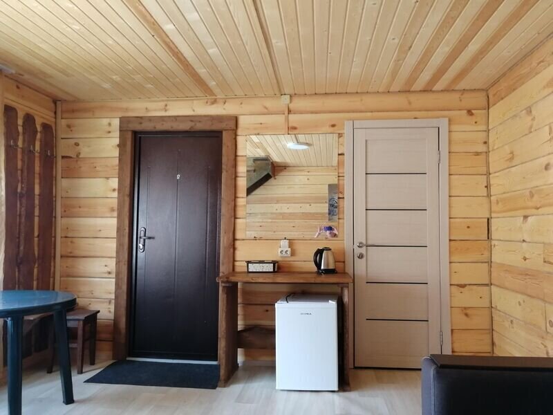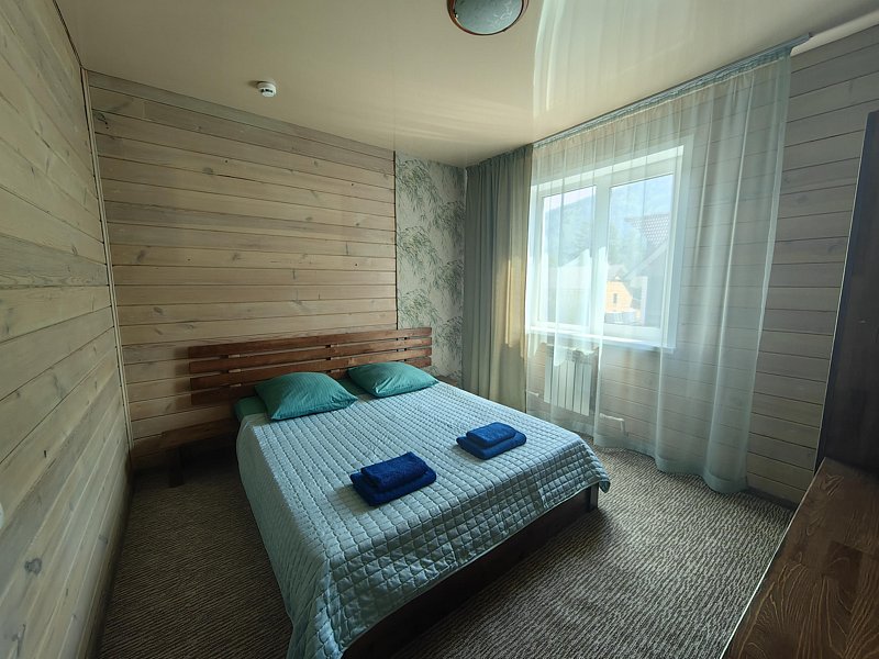 Двухкомнатный номер в коттедже расположен на втором этаже с балконом. Гости первого и второго этажей коттеджа могут воспользоваться летней кухней, примыкающей к коттеджу.