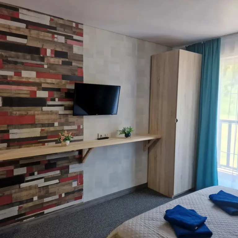 Однокомнатный номер класса Стандарт-эконом расположен на первом этаже, душ и туалет на этаже общий на два номера. Номер без телевизора