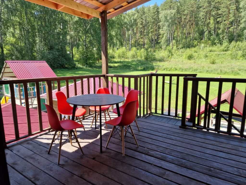 Уютный двухкомнатный номер с мини-кухней на втором этаже, имеет балкон и террасу с потрясающим видом на горы и лес.