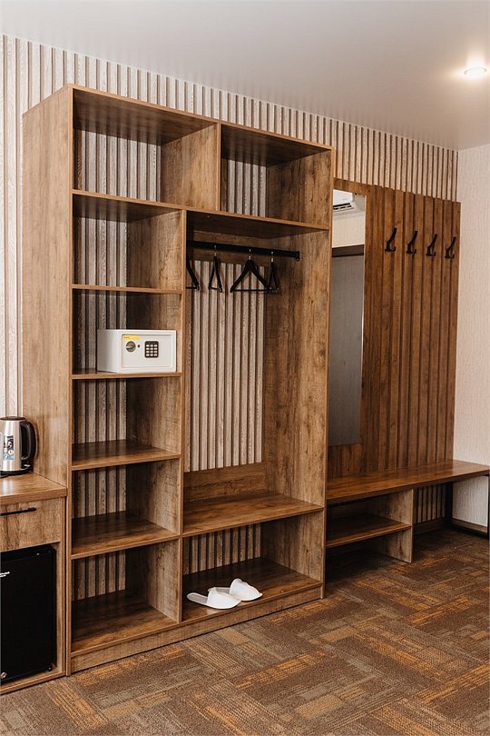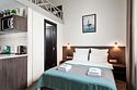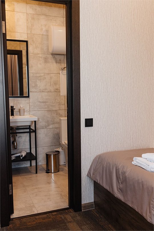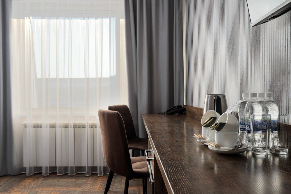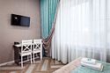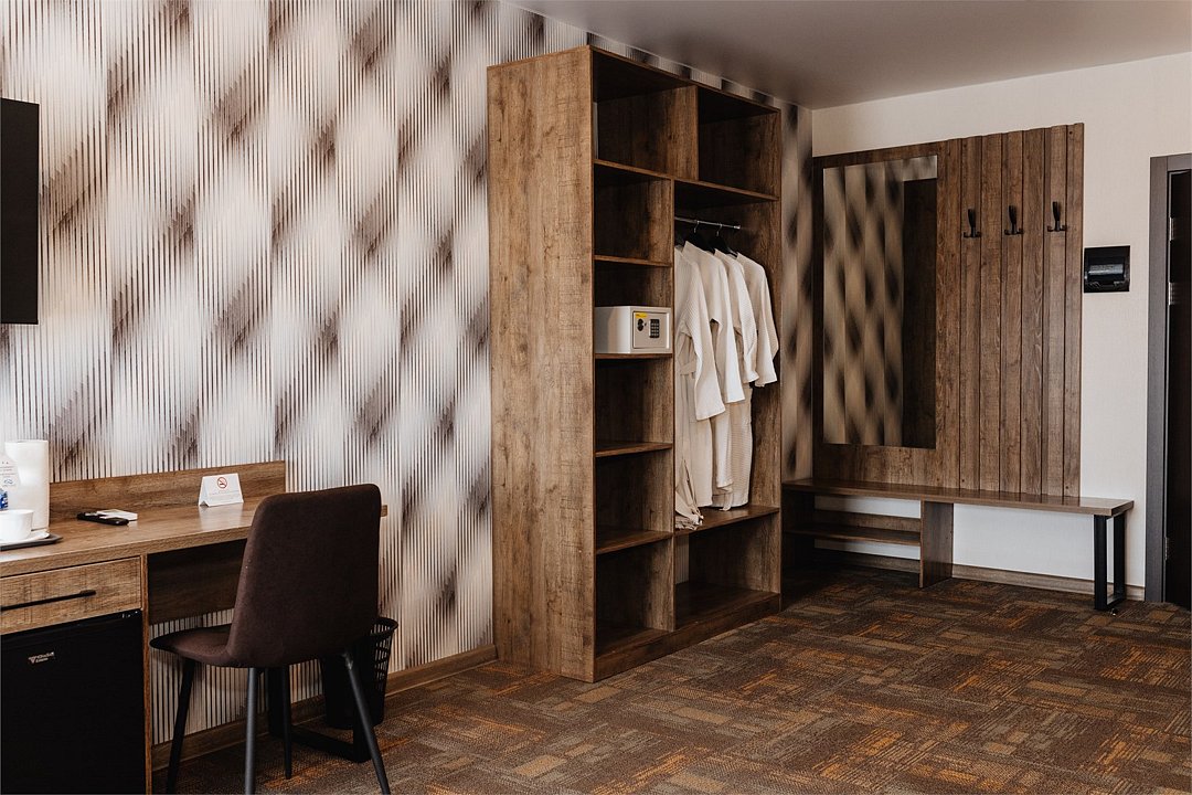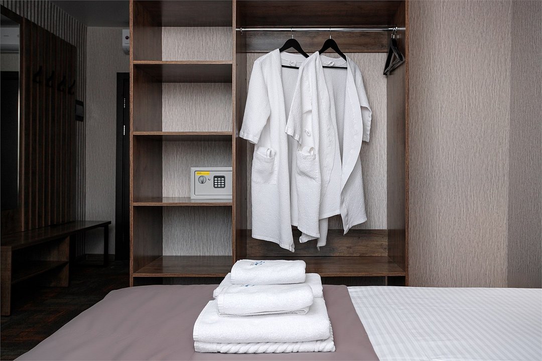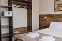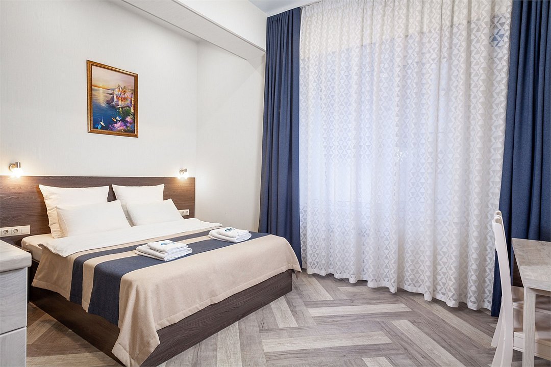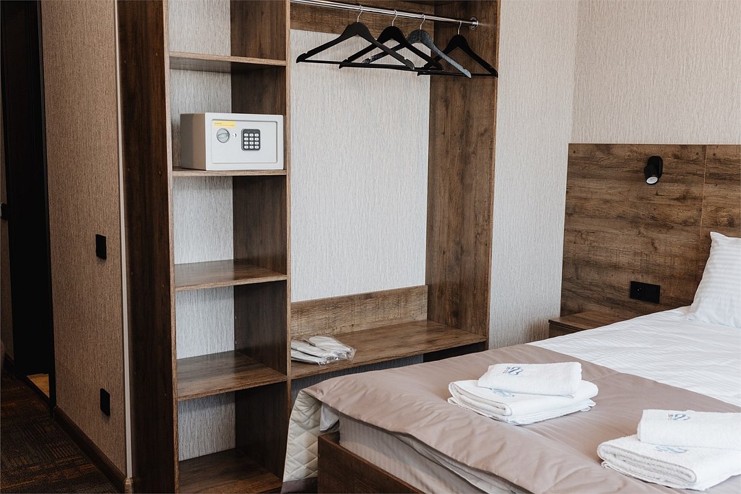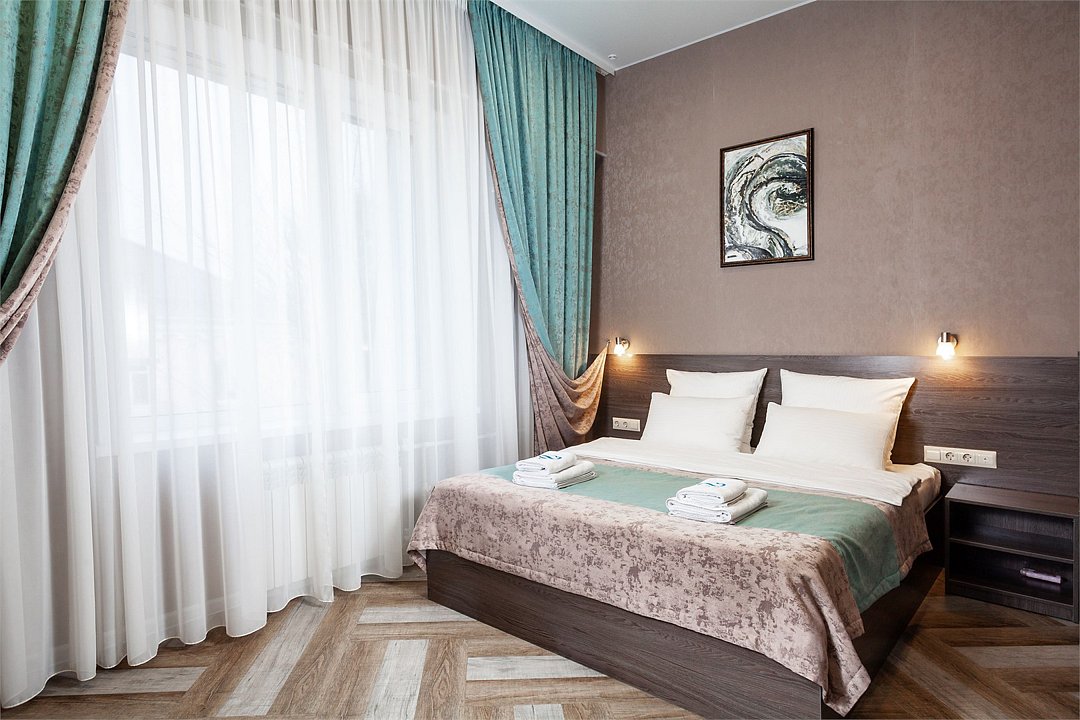 Стандартный номер с двуспальной кроватью. Кровать оснащена ортопедическим матрасом, шторы black-out из светонепроницаемого материала создадут в номере уютный полумрак. Сигнал Wi-Fi достаточно мощный для загрузки программ или просмотра фильмов онлайн на плазменном 42 дюймовом телевизоре. Централизованная система кондиционирования отеля поддерживает комфортную температуру в номерах круглый год.Услуги и удобства