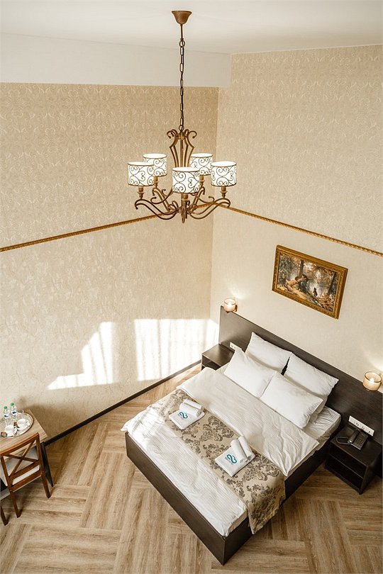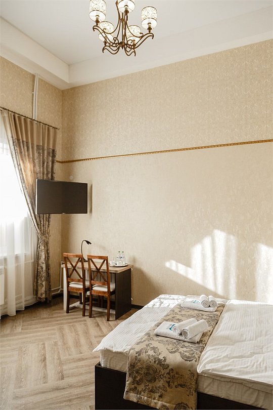 Прекрасный классический номер (30 кв. м). Высокие потолки, комфортная мебель, хрустальная люстра - все это создает особую уютную атмосферу. Высокая удобная кровать и белье из шелковистого сатина обеспечат прекрасный сон.Услуги и удобства