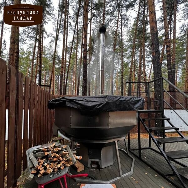Банный чан с джакузи и ароматом пихты до 8 человек.. Минимальный заказ 2 часа.