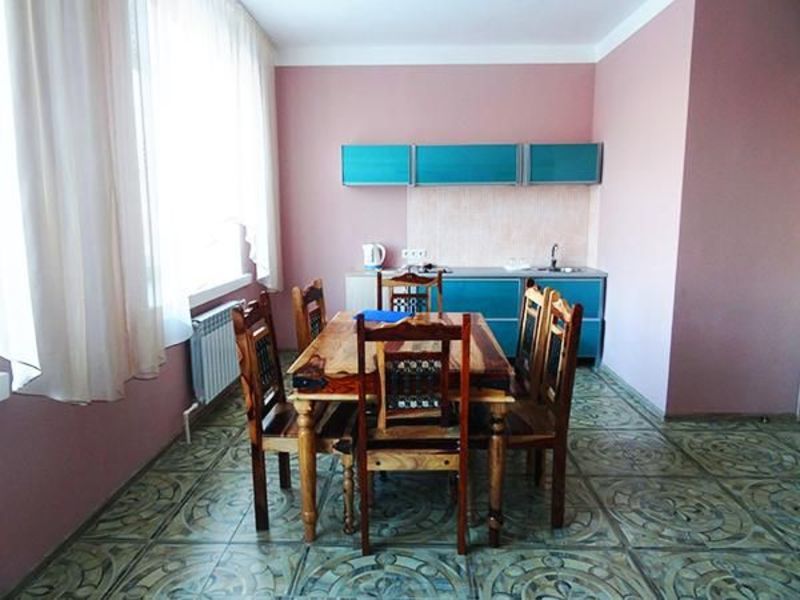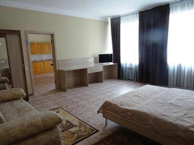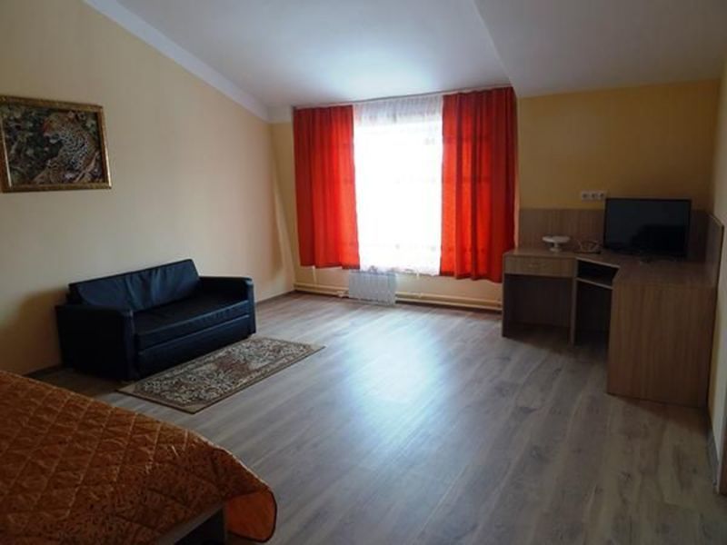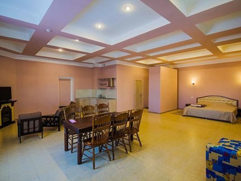 2-комнатный 4-местный номер. Первая комната - кухня с раздвижным столом, вторая - спальня с диваном и двуспальной кроватью.