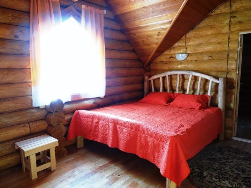 Коттедж на 8 спальных мест: 2 двуспальные кровати, 2 раскладушки и диван.
