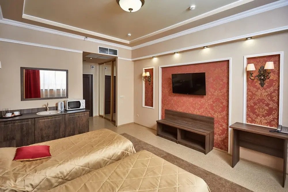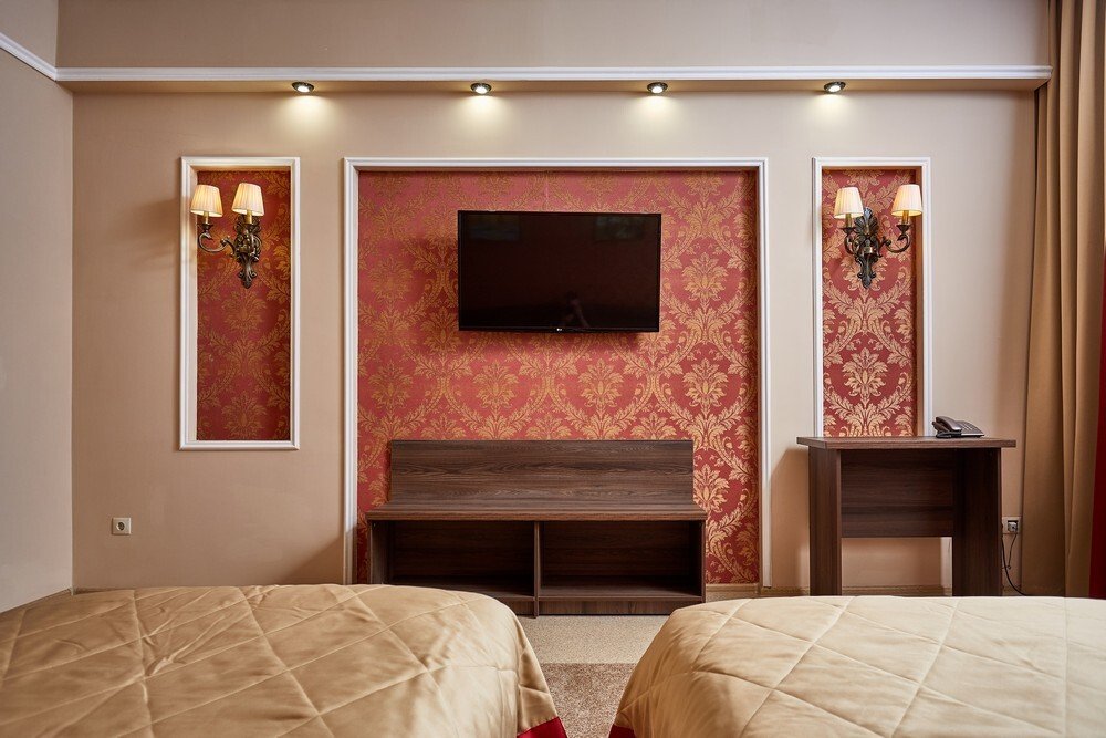 Номер уютно обставлен и оснащён необходимым, чтобы отдохнуть после долгого и насыщенного дня. Имеются телевизор. Перечисленные услуги есть не во всех номерах.