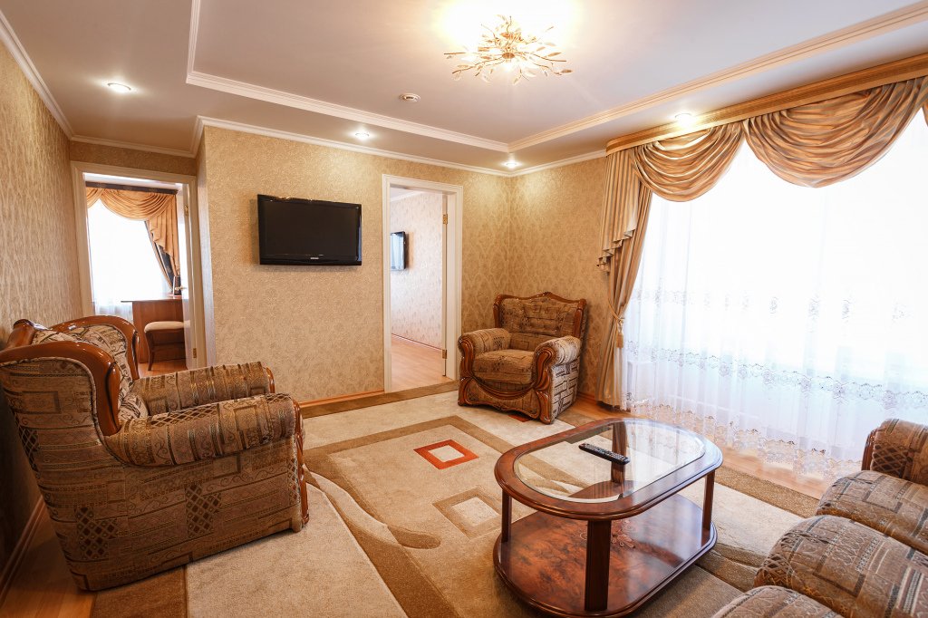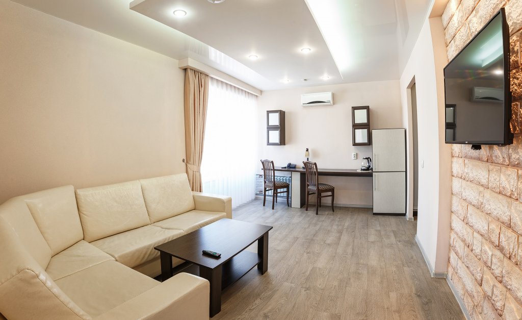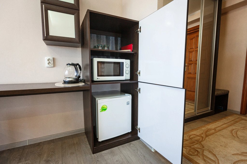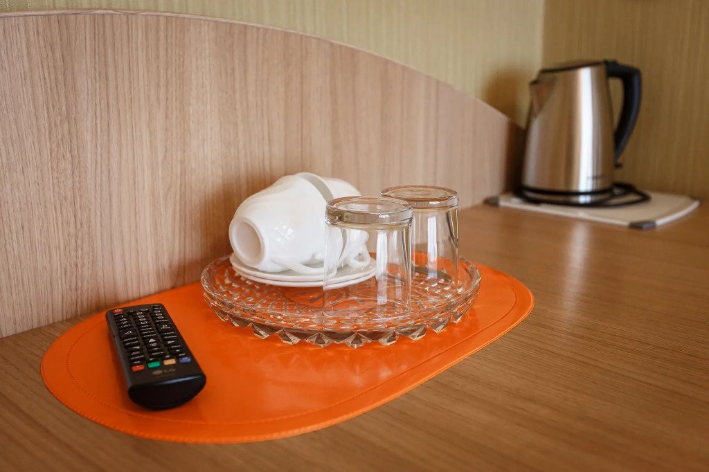 В номере вы найдёте телевизор. Оснащение зависит от выбранной категории номера.