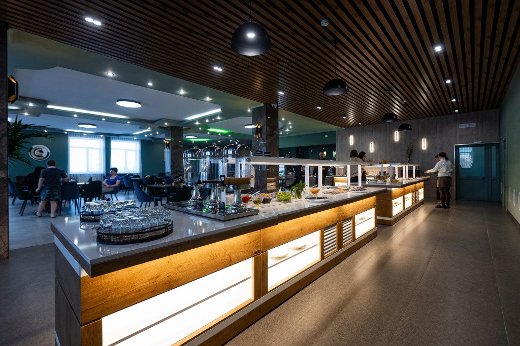 Для гостей работает ресторан. Кафе отеля — удобное место для перекуса. Гости могут выбирать между полным пансионом и полупансионом.
