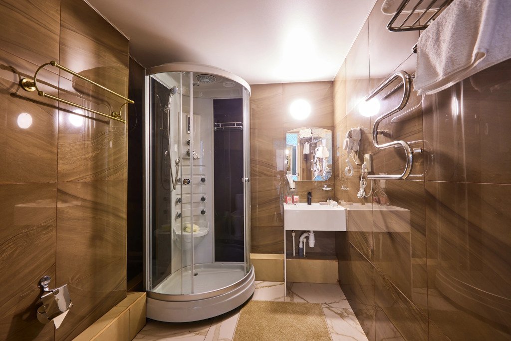 В номере имеются душ, телевизор, халат и тапочки. Оснащение зависит от выбранной категории номера.
