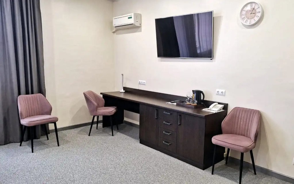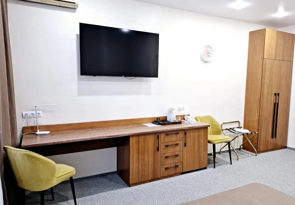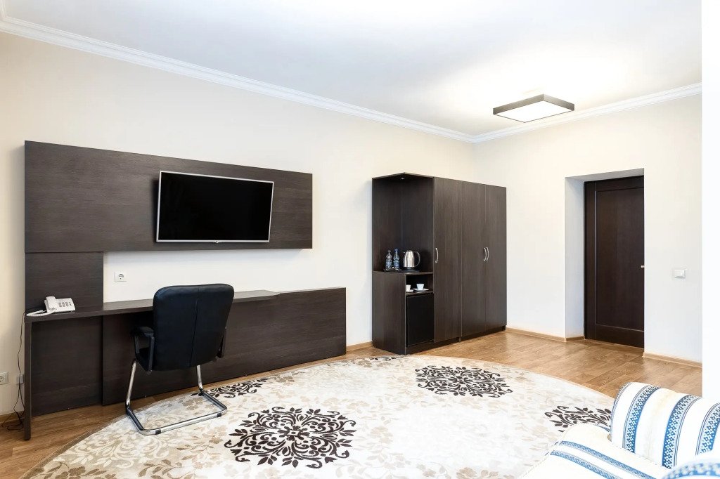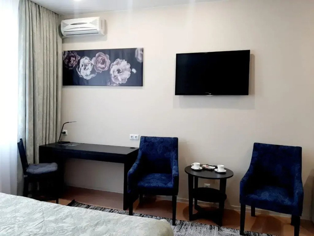 Чтобы вы могли отдохнуть после долгого дня, в номере есть телевизор и халат. Перечисленные услуги есть не во всех номерах.