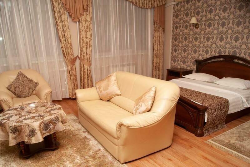 Двуспальная кровать, мягкая мебель, ванна с джакузи.