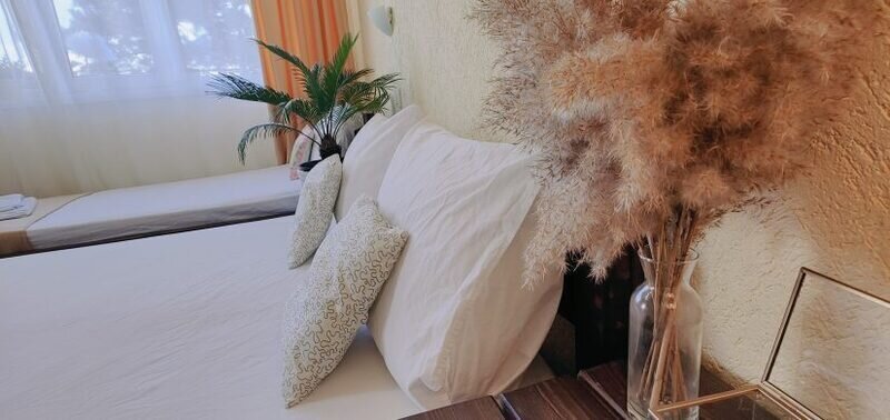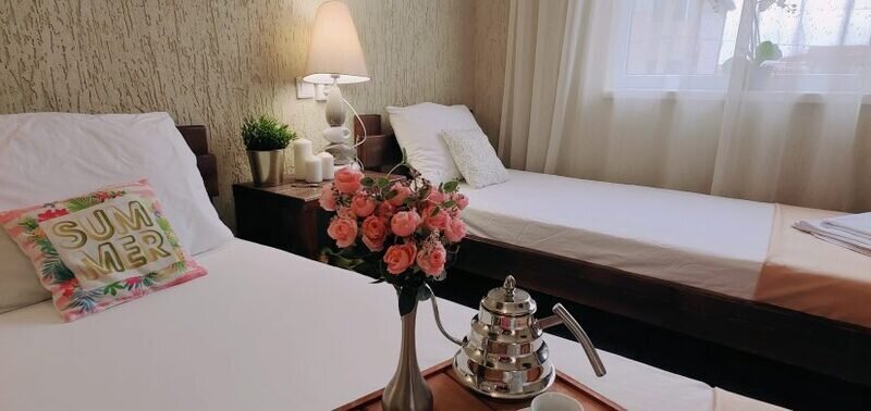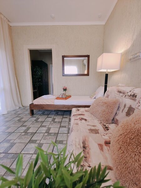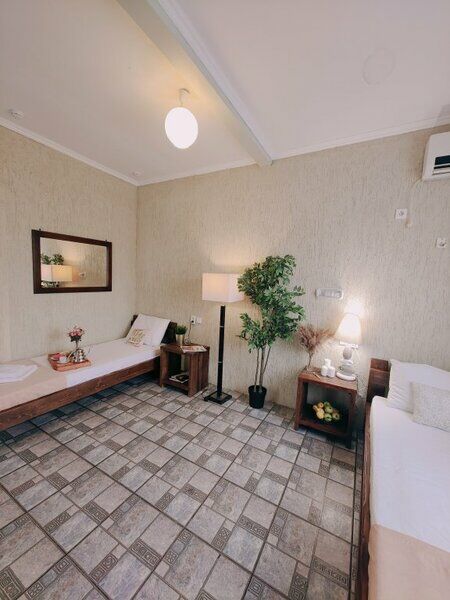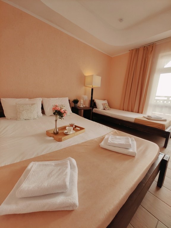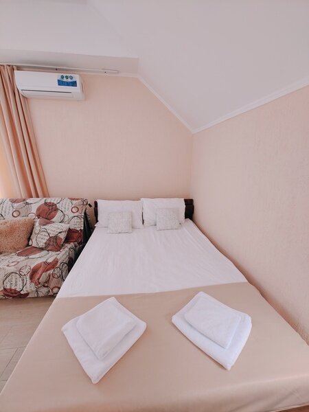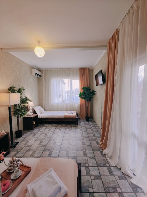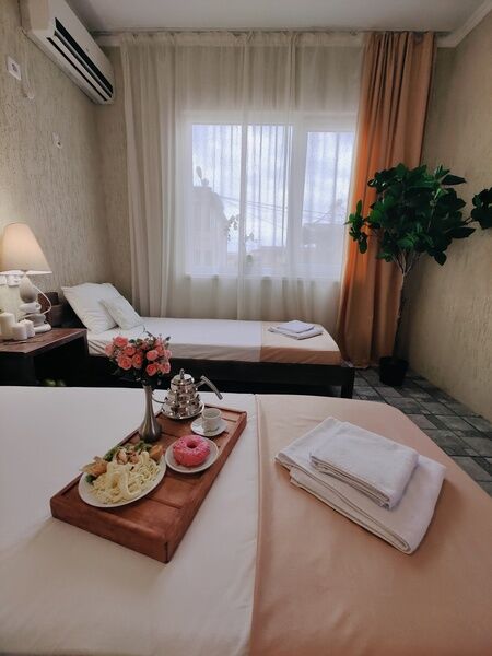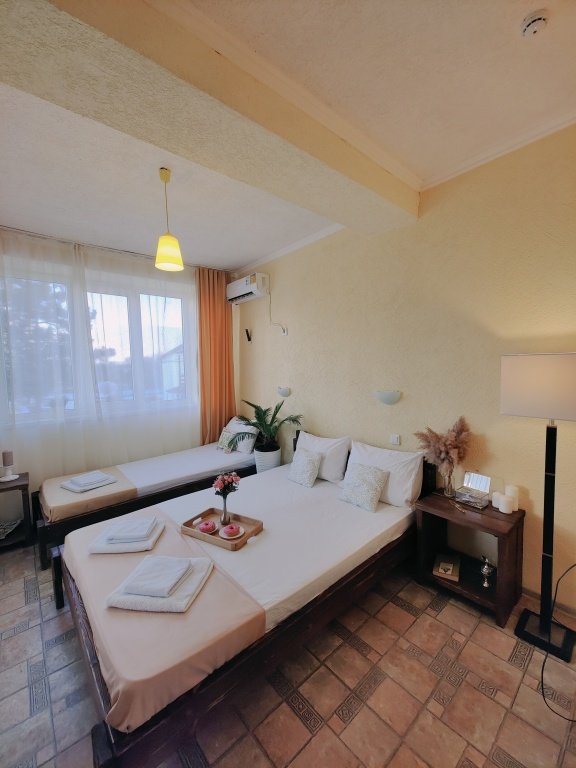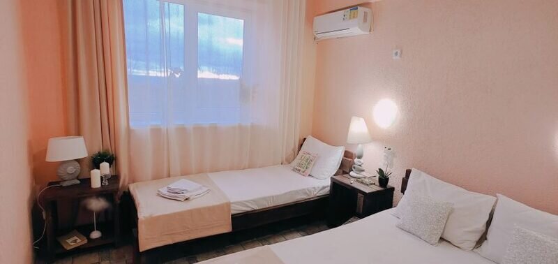 Номере оснащен: двуспальная кровать или две односпальные кровати, шкаф, телевизор, кондиционер, мини-холодильник.