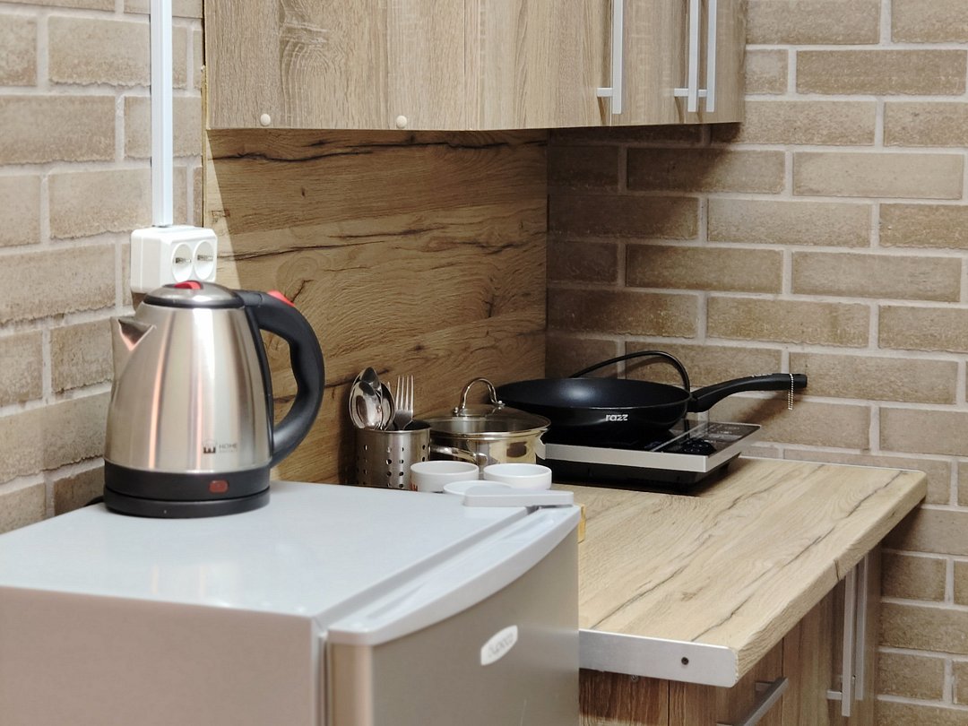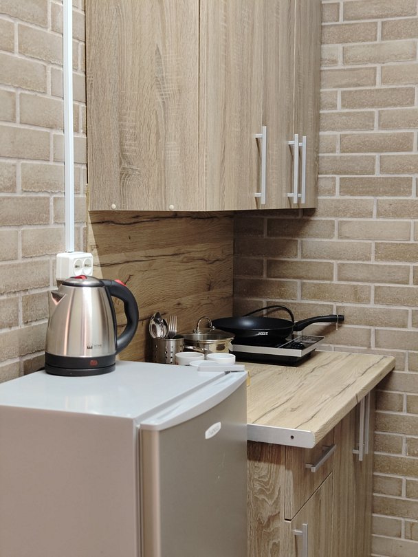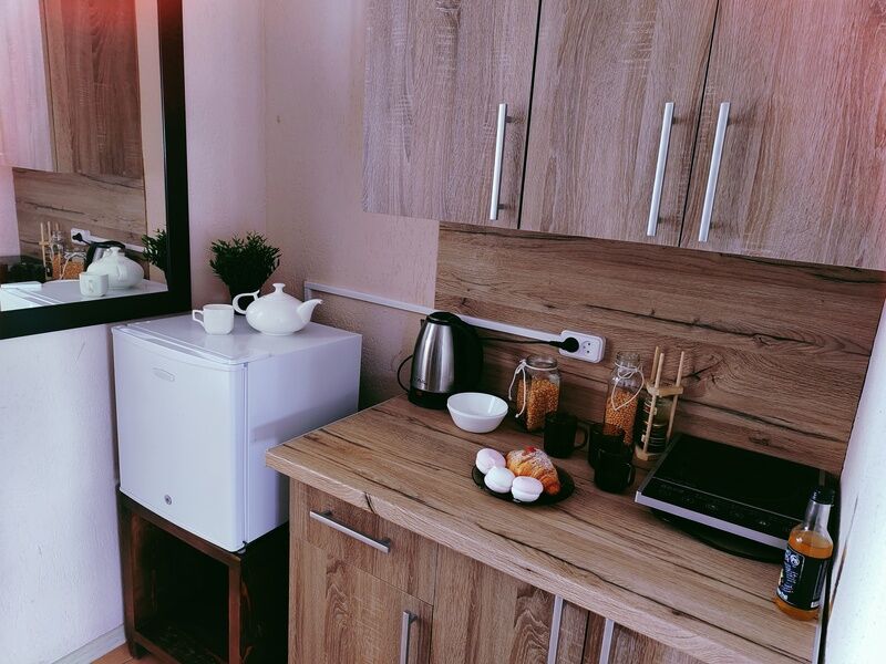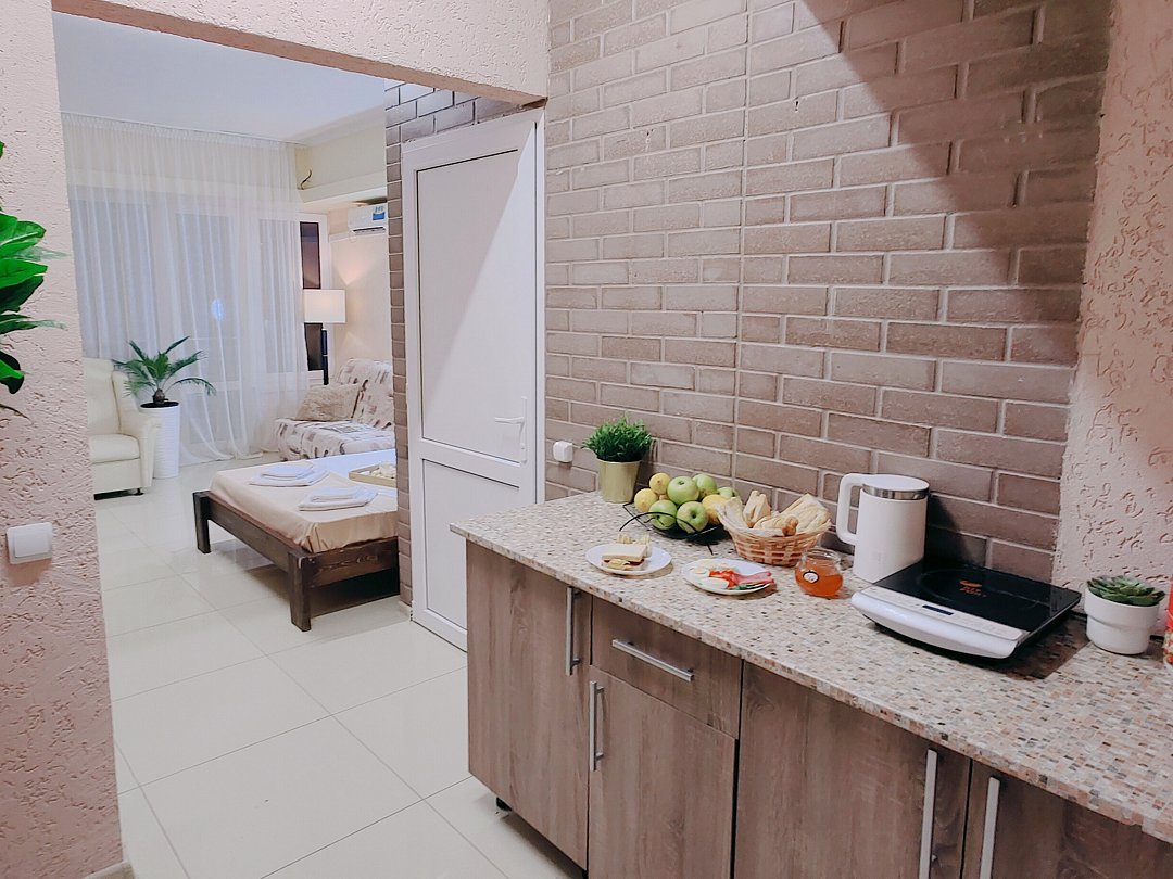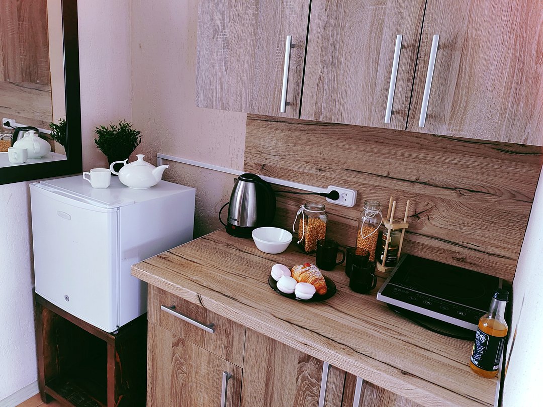 Двухместный номер-студия с мини-кухней и с собственной ванной комнатой.