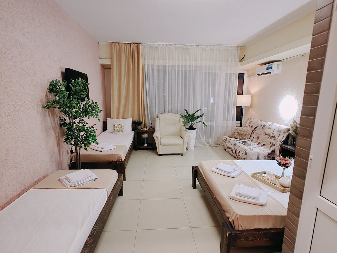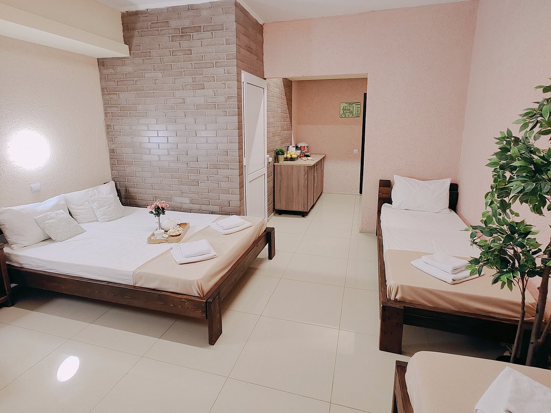 Четырехместный номер-студия с мини-кухней.