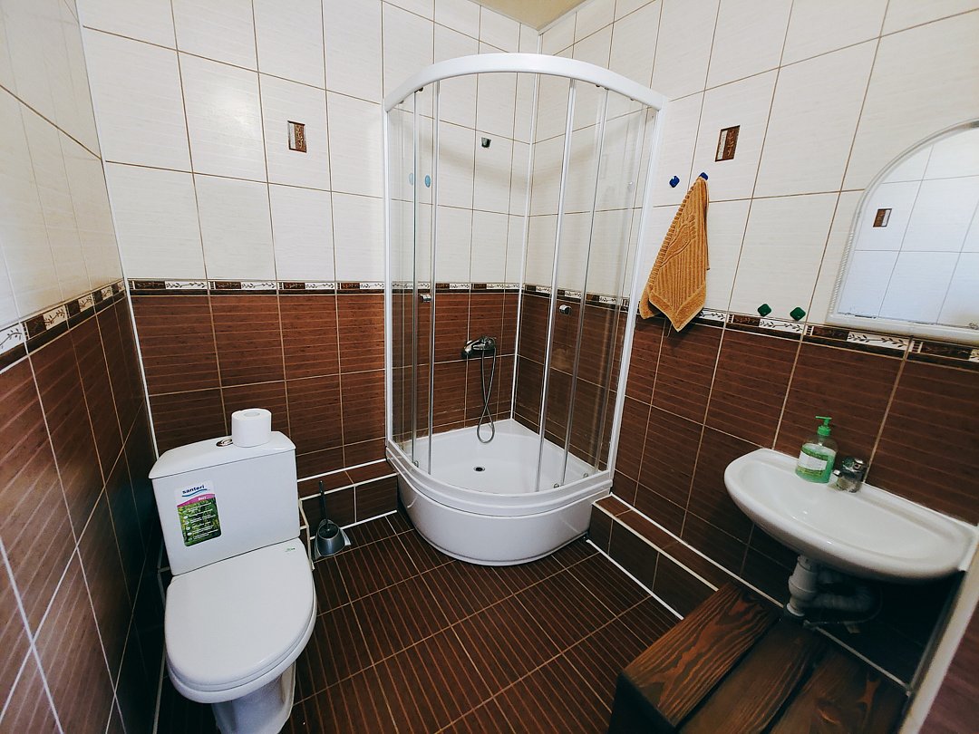 Ванная комната и туалет на три номера на этаже.