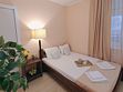 Небольшой двухместный номер: двуспальная кровать или две односпальные кровати, напольная вешалка для одежды, телевизор, кондиционер, мини-холодильник, чайник. На балконе имеется летняя мебель (стол, стулья).