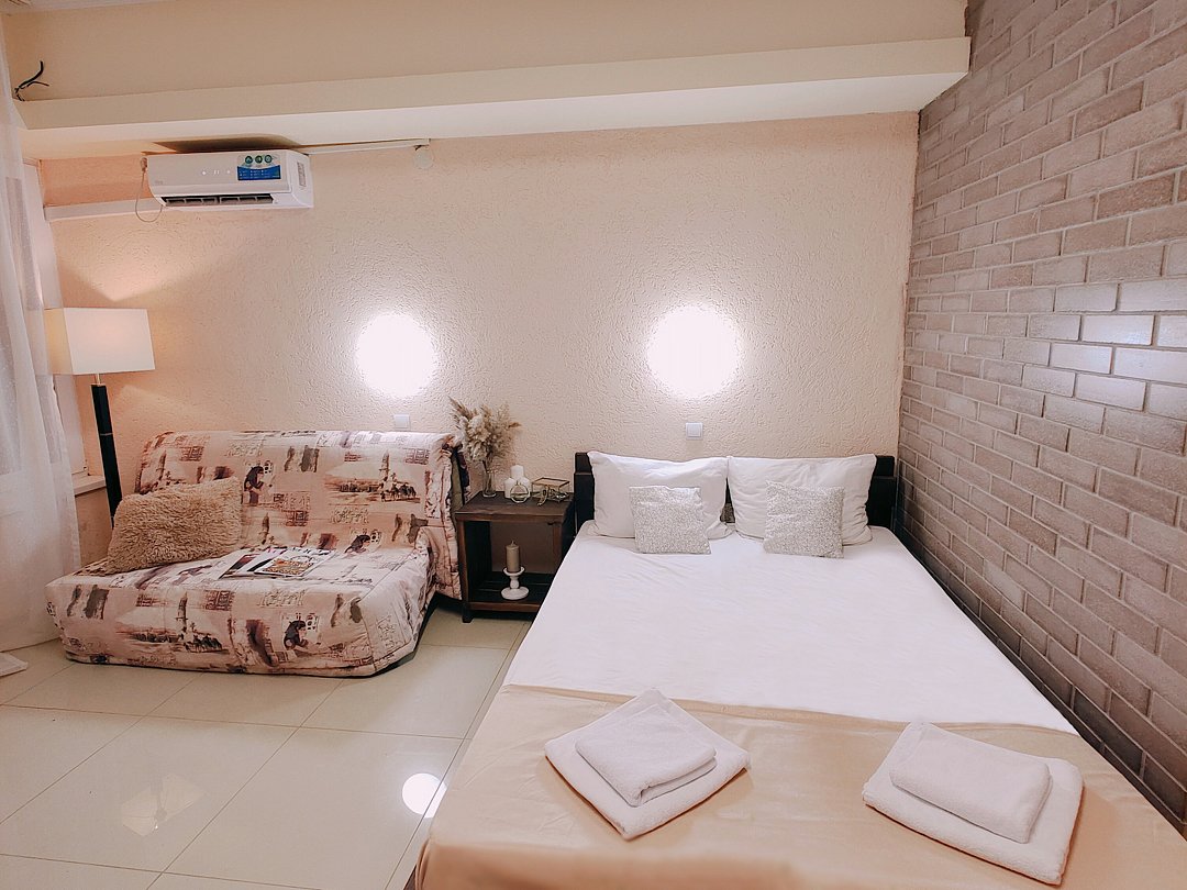 Трехместный номер-студия с мини-кухней и с собственной ванной комнатой.