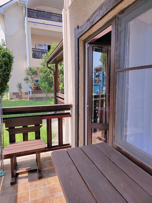В номере имеется балкон с летней мебелью.