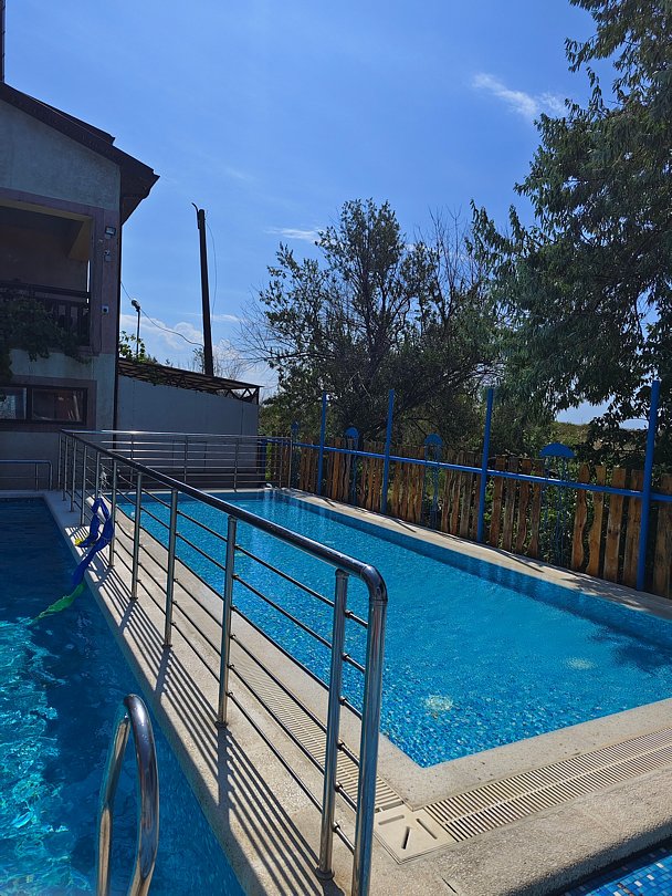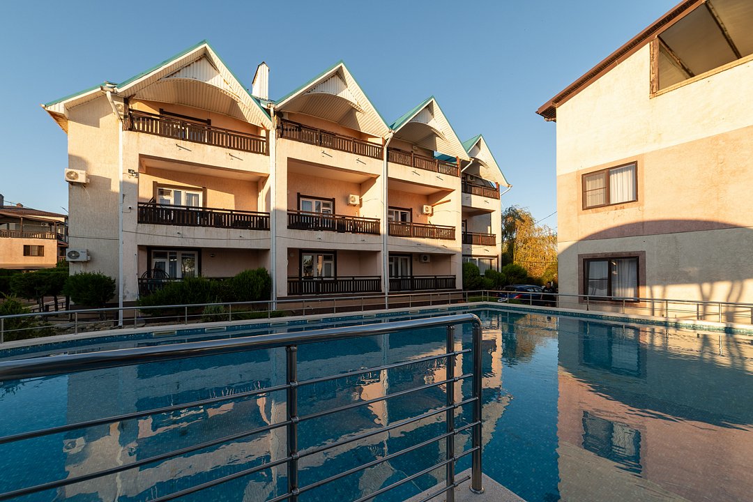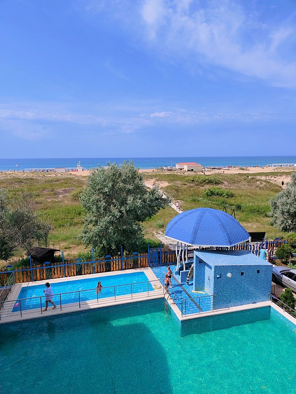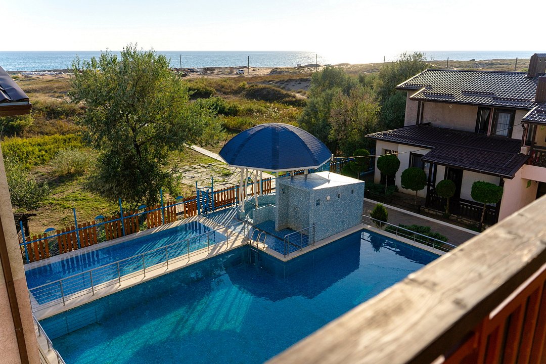 - С бассейном и собственным пляжем