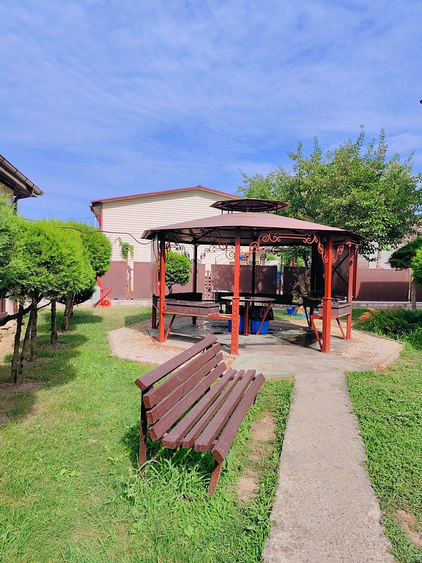 - озелененный двор с местами для отдыха и беседками - бесплатно;