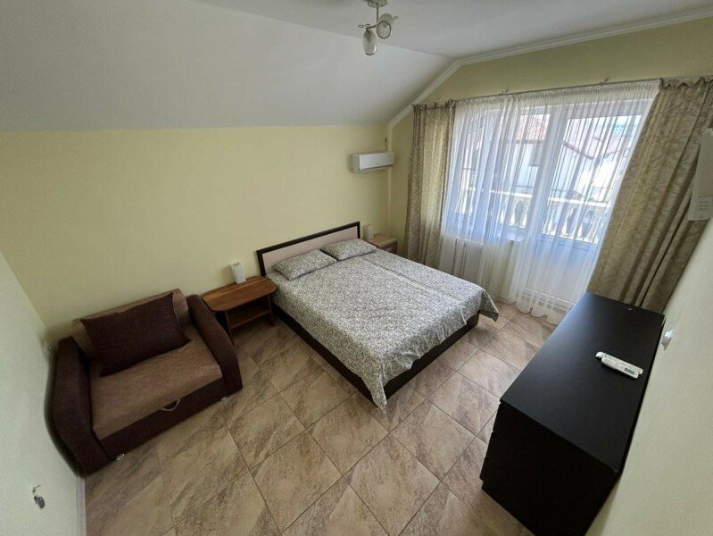 Четырехместный номер со всеми удобствами и лоджией. Номер оснащен кондиционером, холодильником, телевизором и большой лоджией.
