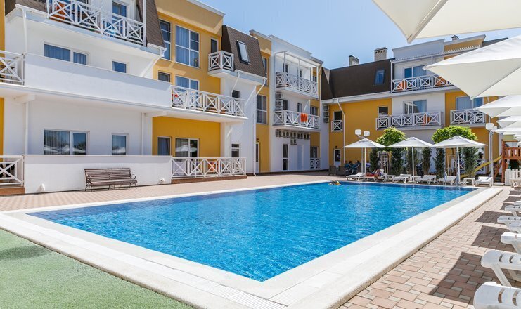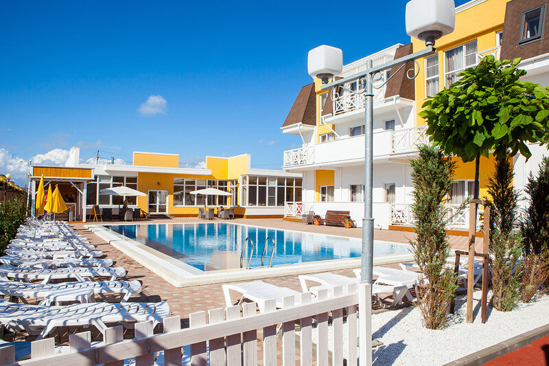В распоряжении гостей – открытый бассейн площадью в 120 кв. м, с подогревом и удобной реклакс-зоной. Для всех отдыхающих открыт кинозал, организовано экскурсионное обслуживание.