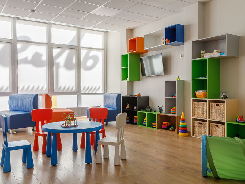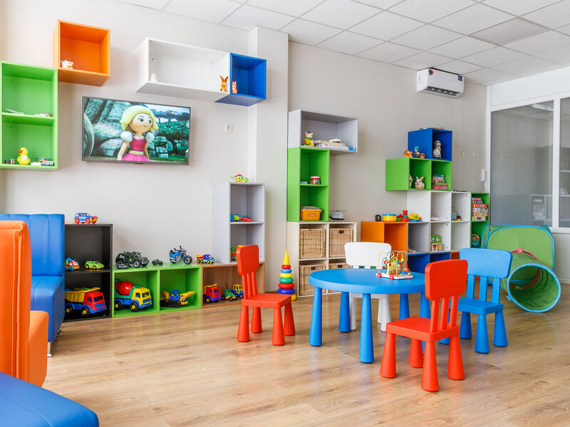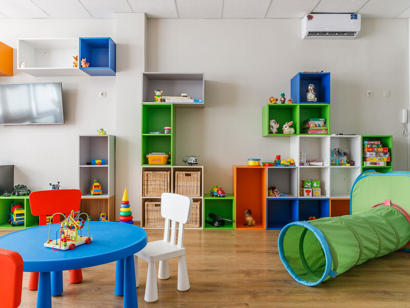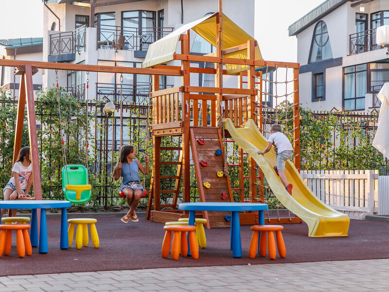 У детворы есть возможность порезвиться на игровой площадке под открытым небом. Для ребят также имеется детская комната в помещении.
