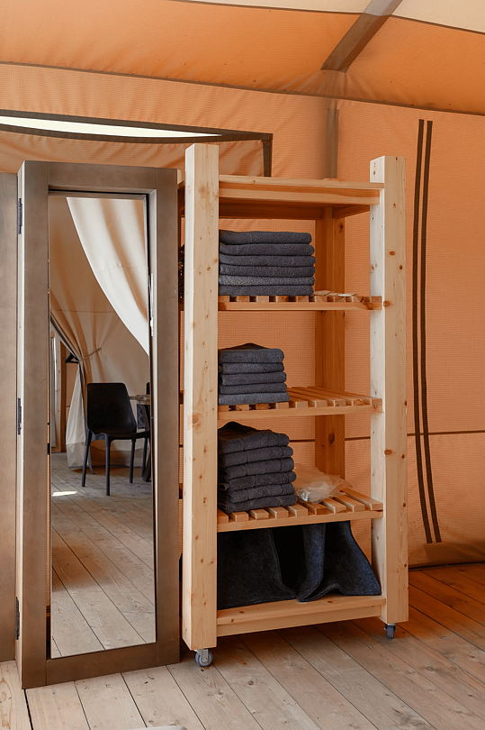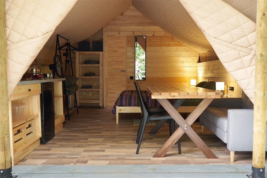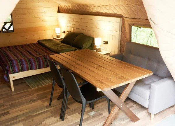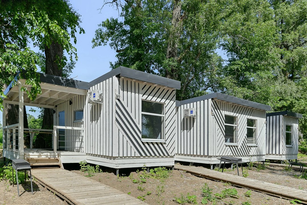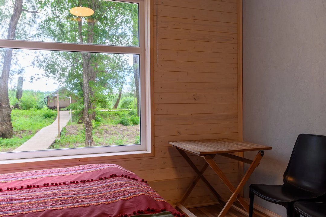 Гостей ждут стильные дома и просторные палатки, оборудованные всем необходимым для комфортного пребывания: удобными зонами для отдыха, работы и хранения личных вещей. Каждая палатка имеет собственную террасу с захватывающим видом — будь то густой лес или спокойная река.