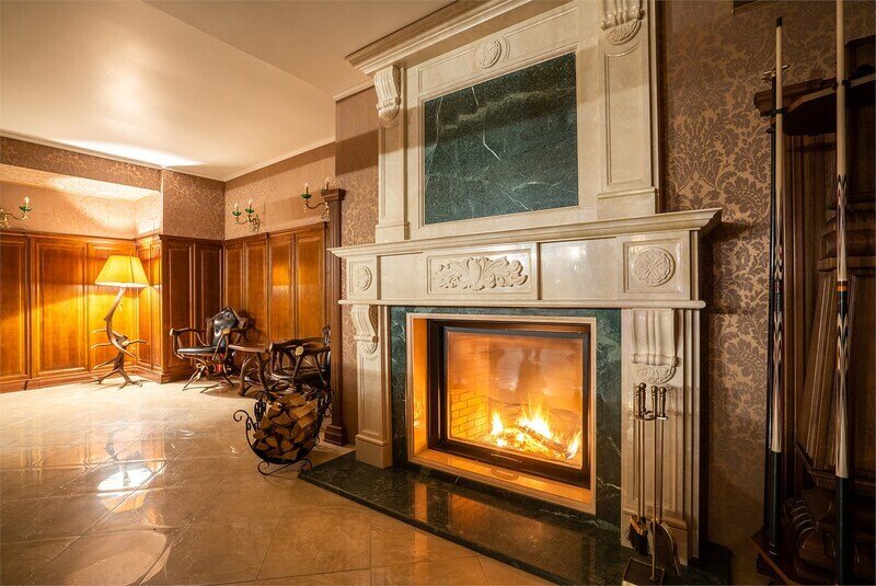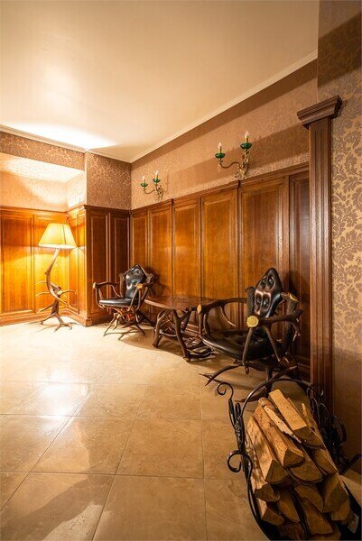 На первом этаже: прихожая, бильярдная с зоной отдыха.