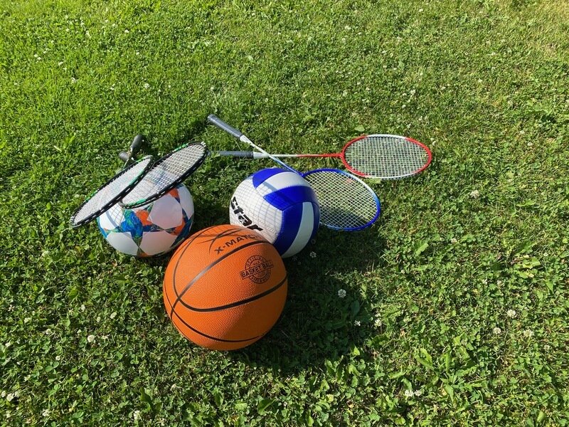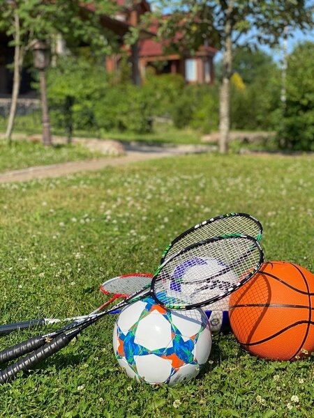 Спортивный инвентарь (фрисби, мячи и бадминтон).