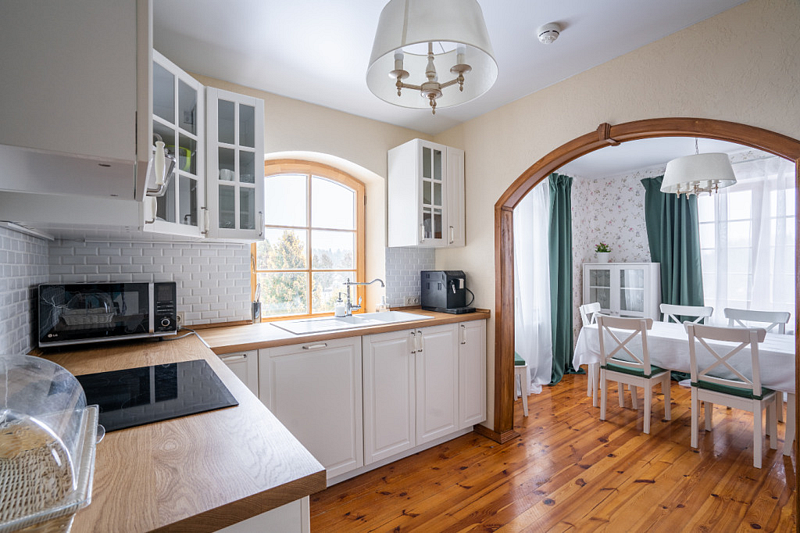 Дом 170 кв.м и имеет 5 спален (3 двухместные, 2 одноместные), в доме 2 санузла, большая гостиная с камином, кухня и столовая.
