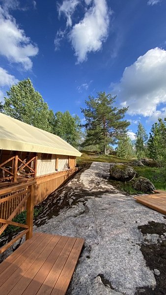 Приватный эко-домик для двоих в окружении карельских скал.