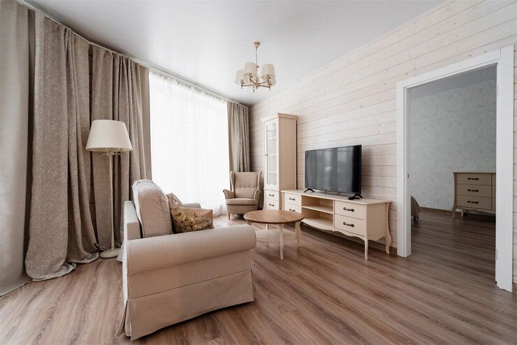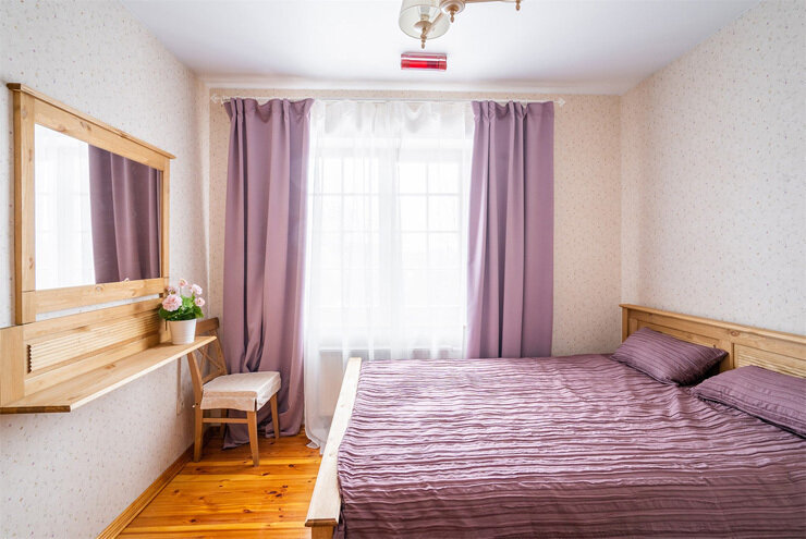 В номере 2 комнаты: гостиная и спальня. Просторная гостиная с панорамными окнами, раскладывающимся диваном, телевизором. Спальня с большой двухместный кроватью. В номере собственная ванная комната и кондиционер. Отлично подойдет для семейных пар с детьми.