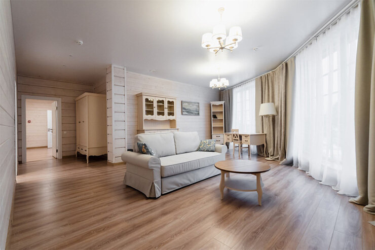 В номере 2 комнаты: гостиная и спальня. Просторная гостиная с панорамными окнами, раскладывающимся диваном, телевизором и рабочей зоной. Спальня с большой двухместный кроватью и выходом на балкон с видом на озеро. На балконе потрясающий вид на озеро, а также комфортная мебель для отдыха. В номере собственная ванная комната и кондиционер.