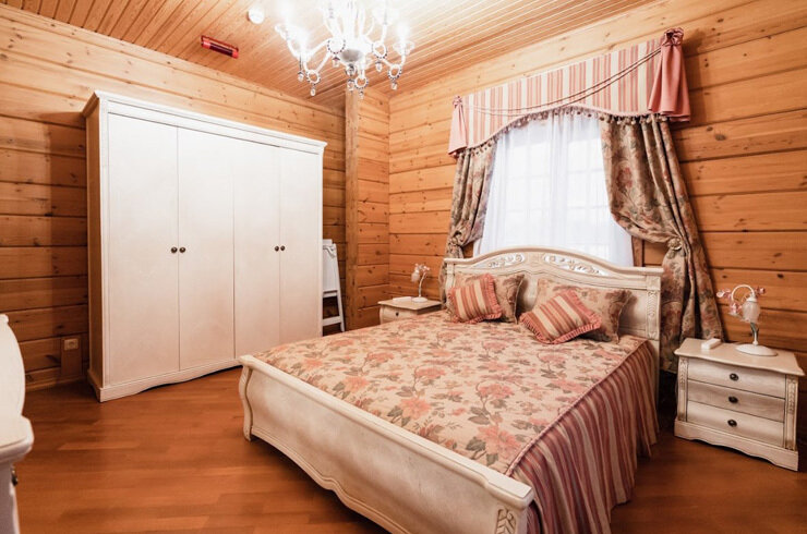 Коттедж имеет 5 спален (3 двухместные, 2 одноместные), в доме 2 санузла, большая гостиная с камином, кухня и столовая. На первом этаже: просторная прихожая, двухместная спальня, санузел, кухня , столовая и гостиная с камином. На втором этаже: 4 спальни (2 двухместные, 2 одноместные), санузел.