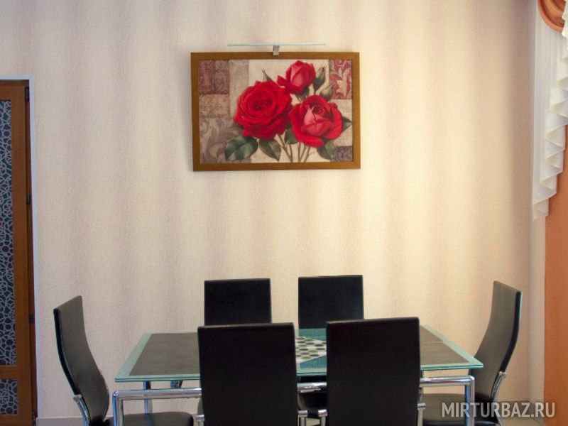 В номере: санузел, душевая кабинка, фен, холодильник, плазменный телевизор диагональ 120 см., сейф, чайник, детская кроватка.