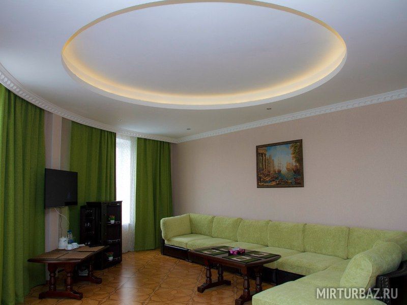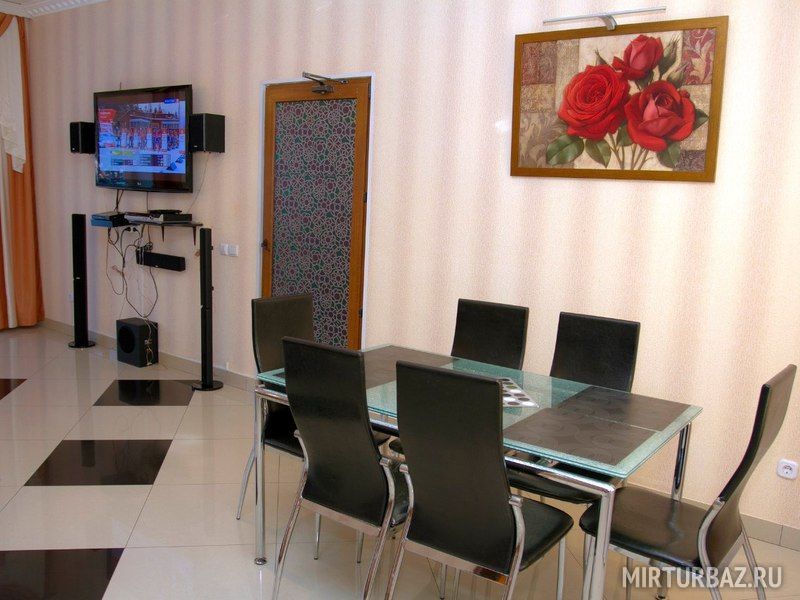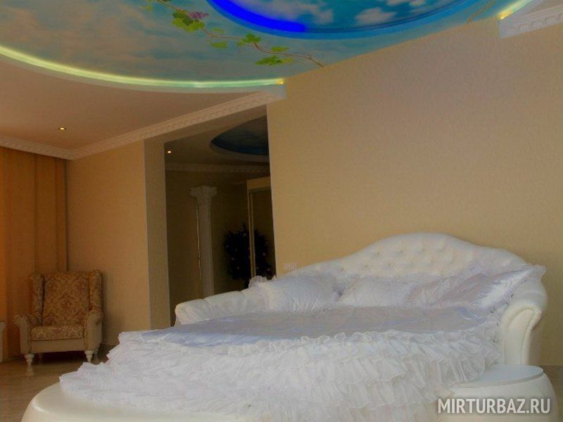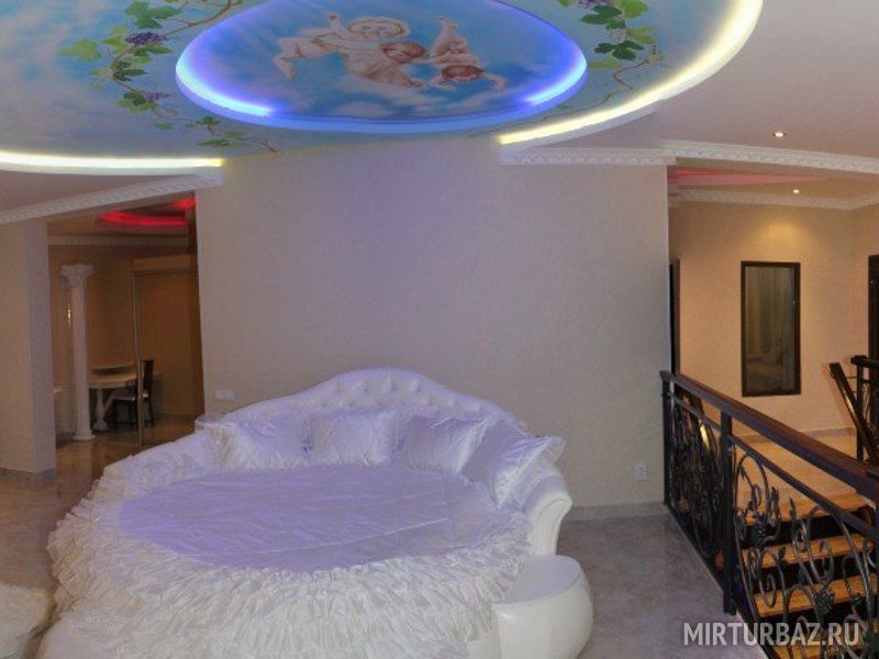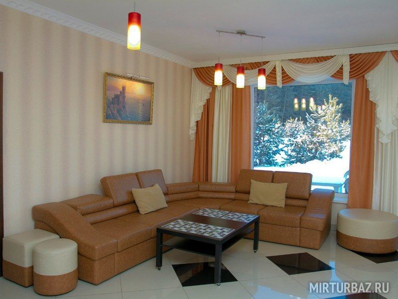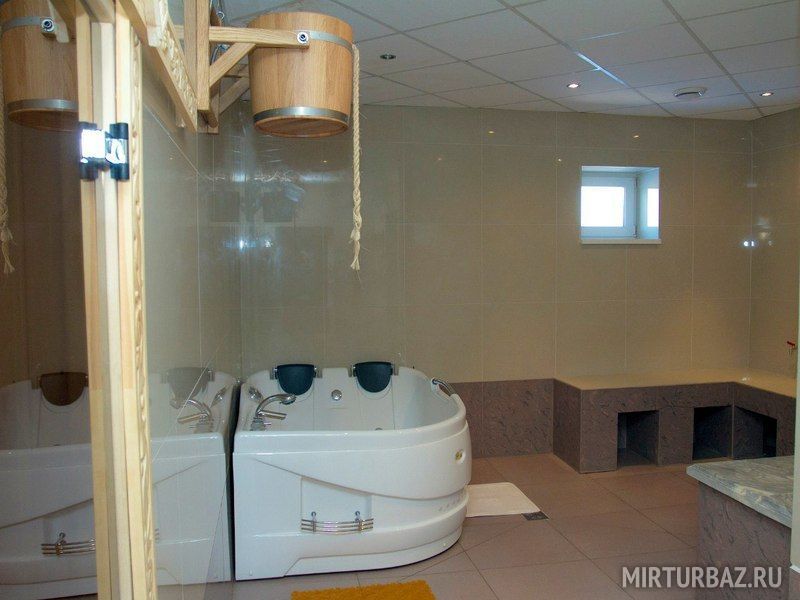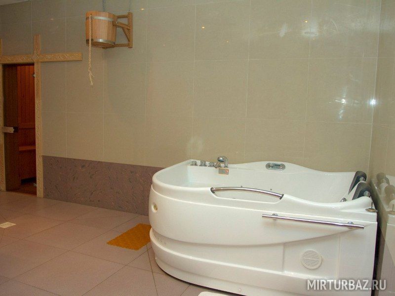 В номере: телевизор на каждом этаже, санузел, сауна, джакузи, холодильник.
