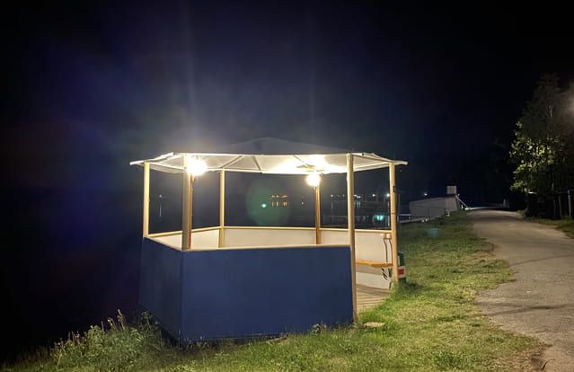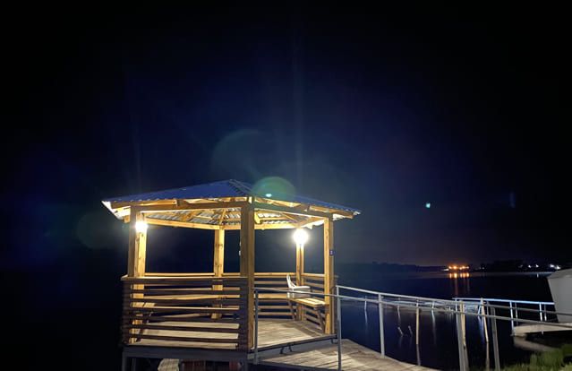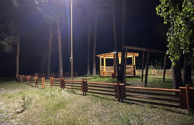 До 10 человек. Вдоль береговой линии Паршинского рыбоводного участка. Имеется электричество и освещение.