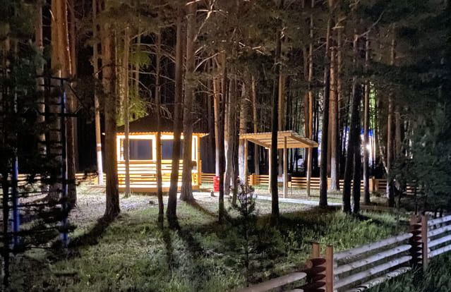 До 10 человек. Вдоль береговой линии в лесной зоне Паршинского рыбоводного участка. Имеется электричество и освещение, мангал. Дом на колесах (кемпер) с встроенным санузлом, душевой кабиной, телевизором, холодильником, газовой плитой. 4 спальных места.